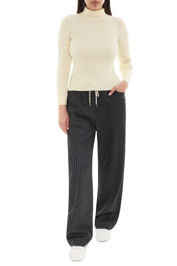 Брюки из шерсти с добавлением кашемира выполнены в свободном крое и рассчитаны на комфортное повседневное ношение. Мягкий, тёплый материал приятно ощущается на коже и сохраняет форму. Эластичный пояс с кулиской задаёт расслабленную посадку, не нарушая чистоты силуэта. Боковые карманы органично вписаны в конструкцию, подчёркивая практичный и сдержанный характер модели.