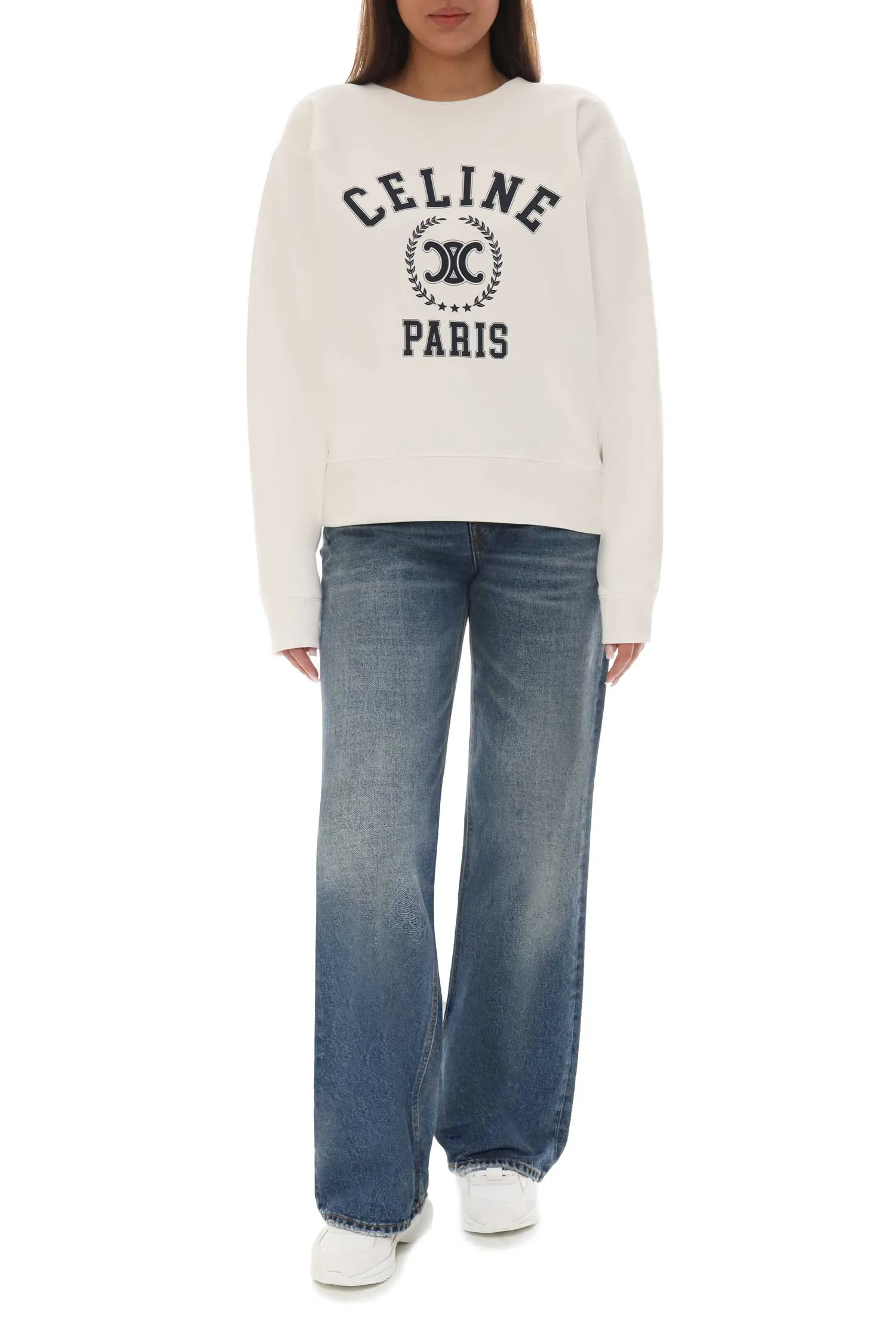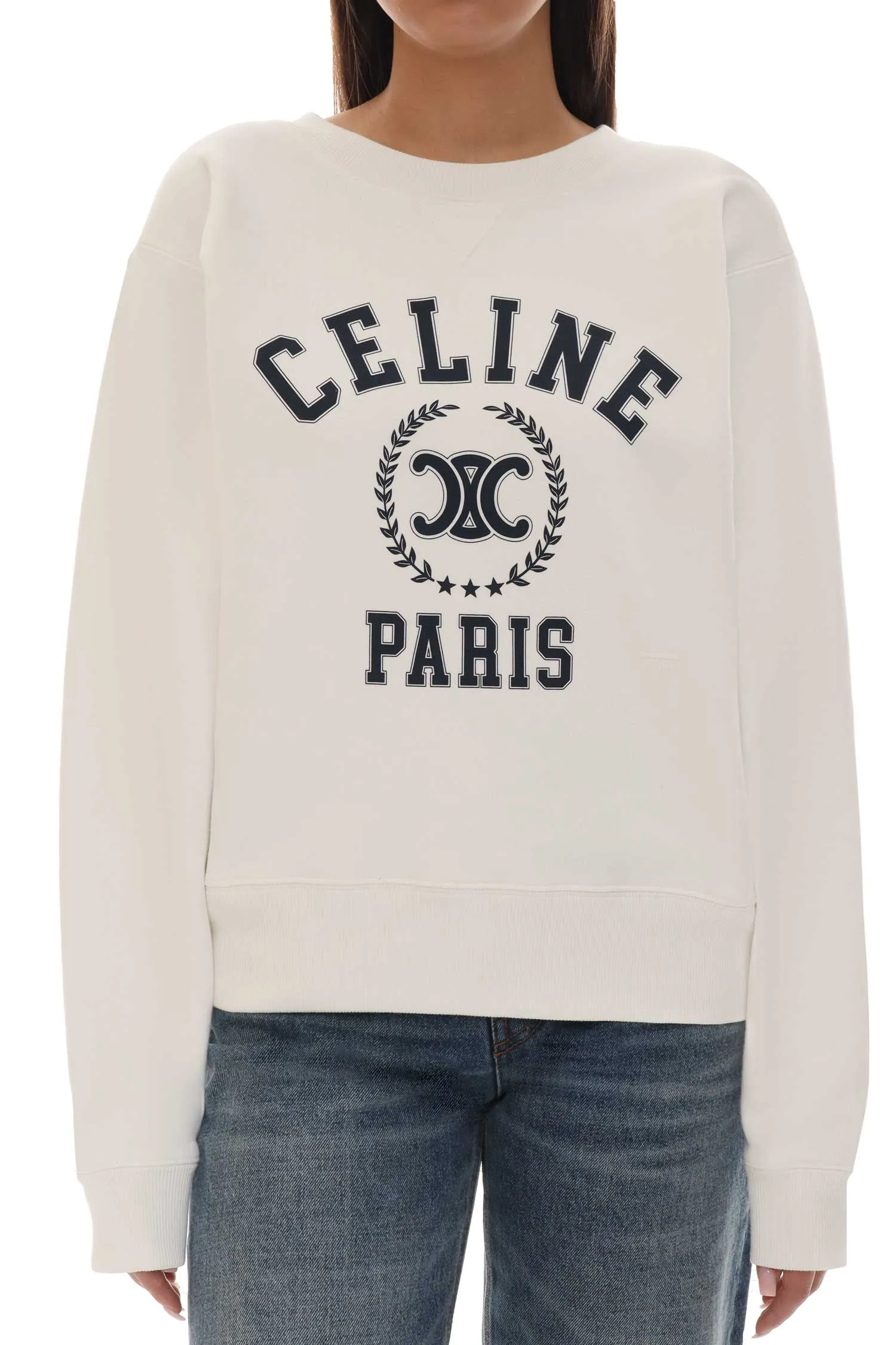 CELINE СВИТШОТ МОЛОЧНЫЙ, НА ГРУДИ КРУПНАЯ Т/СИНЯЯ ЛОГО-НАДПИСЬ, ЛОГО