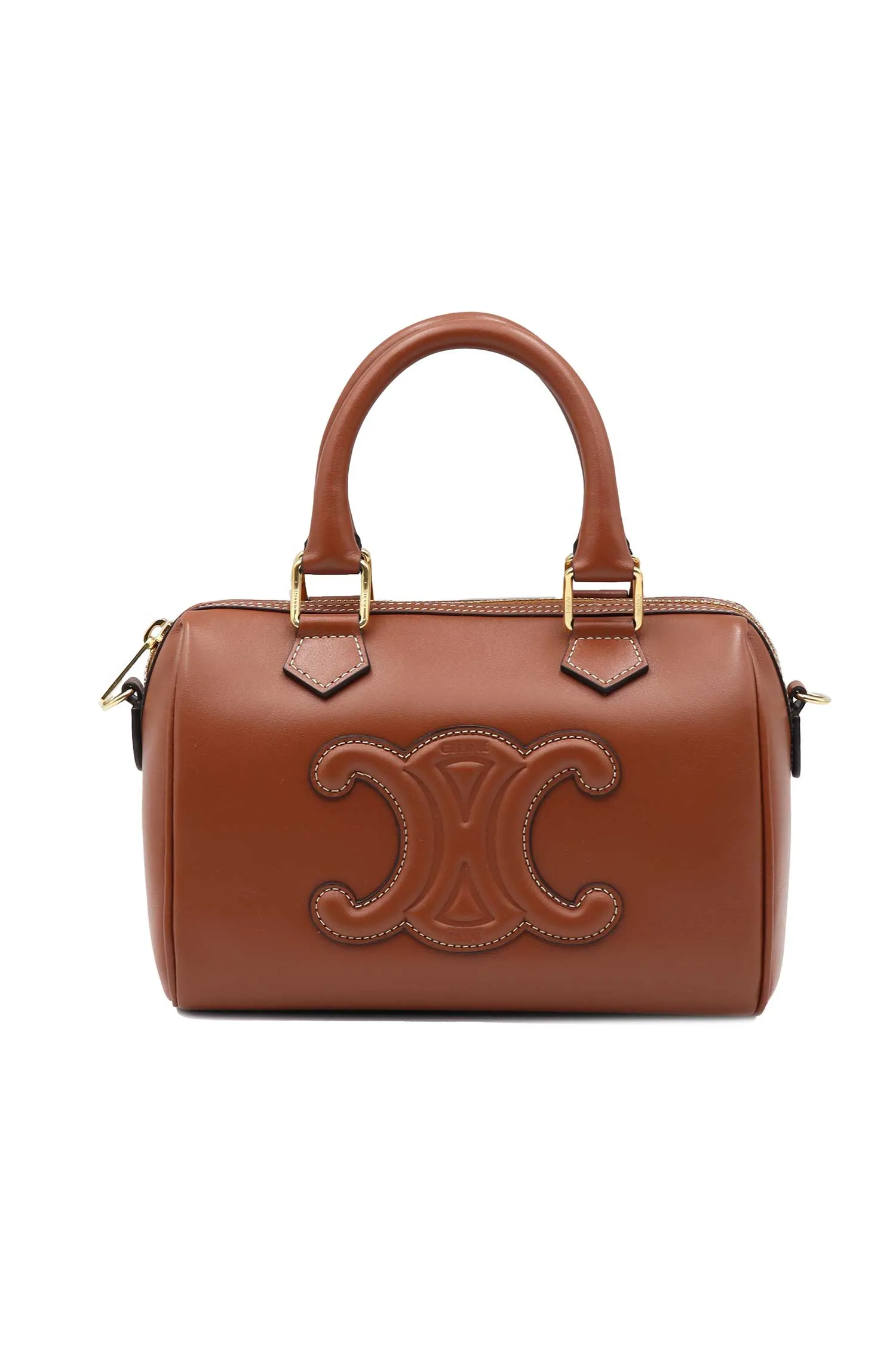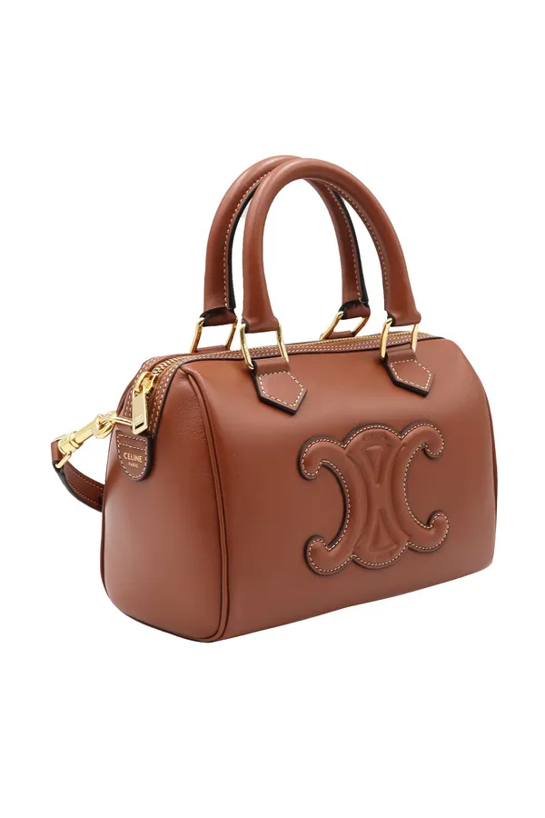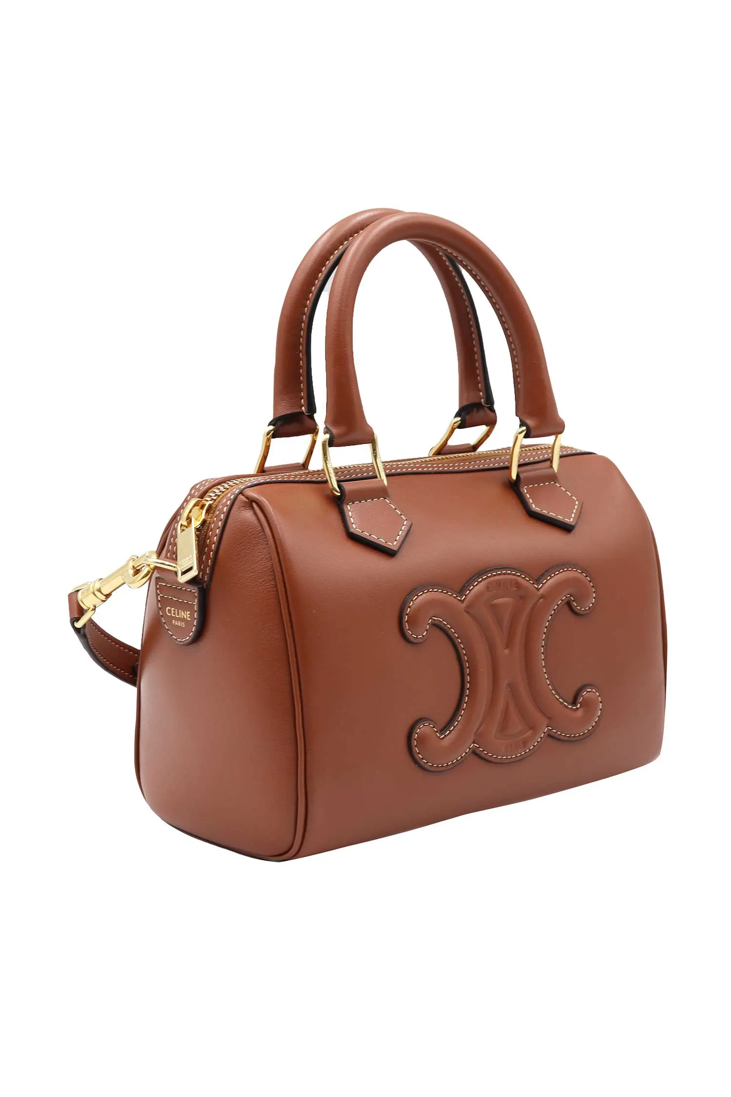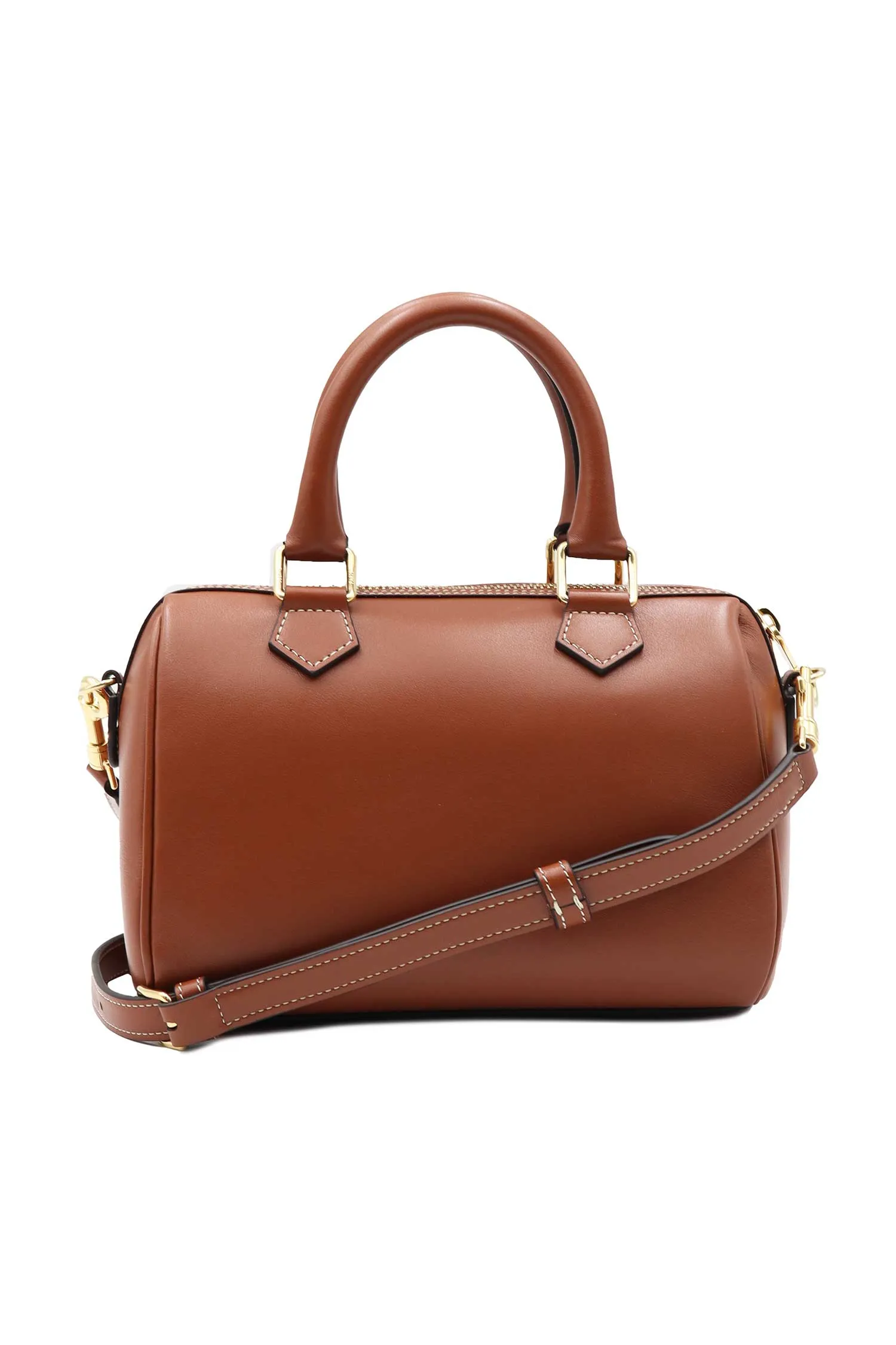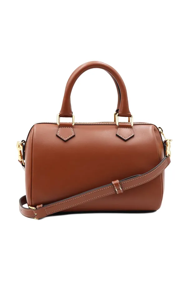 СУМКА BOSTON SMALL КОРИЧНЕВАЯ, МАТОВАЯ КОЖА, НА МОЛНИИ, СБОКУ НАШИВКА-ЛОГО В ТОН, РУЧКИ, РЕМЕШОК
