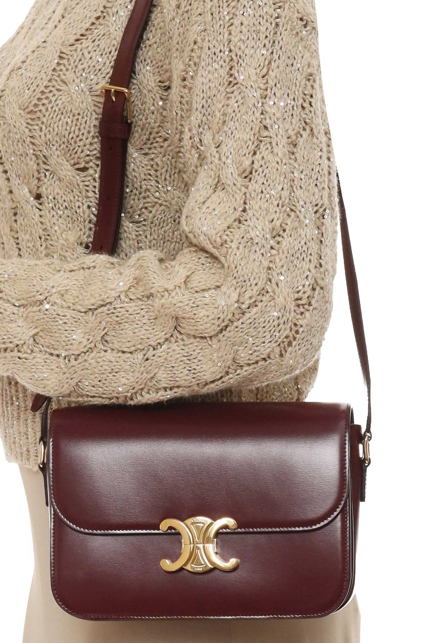 СУМКА TRIOMPHE MEDIUM БОРДОВАЯ, БЛЕСТЯЩАЯ КОЖА, С КЛАПАНОМ, ЗОЛОТИСТАЯ ПРЯЖКА-ЛОГО, РЕМЕШОК