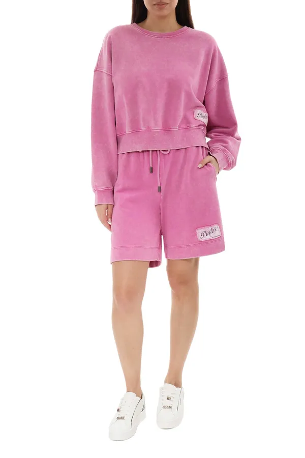 ШОРТЫ ФУКСИЯ НА КУЛИСКЕ, ВЫВАРЕННЫЕ, СНИЗУ НАШИВКА-ЛОГО