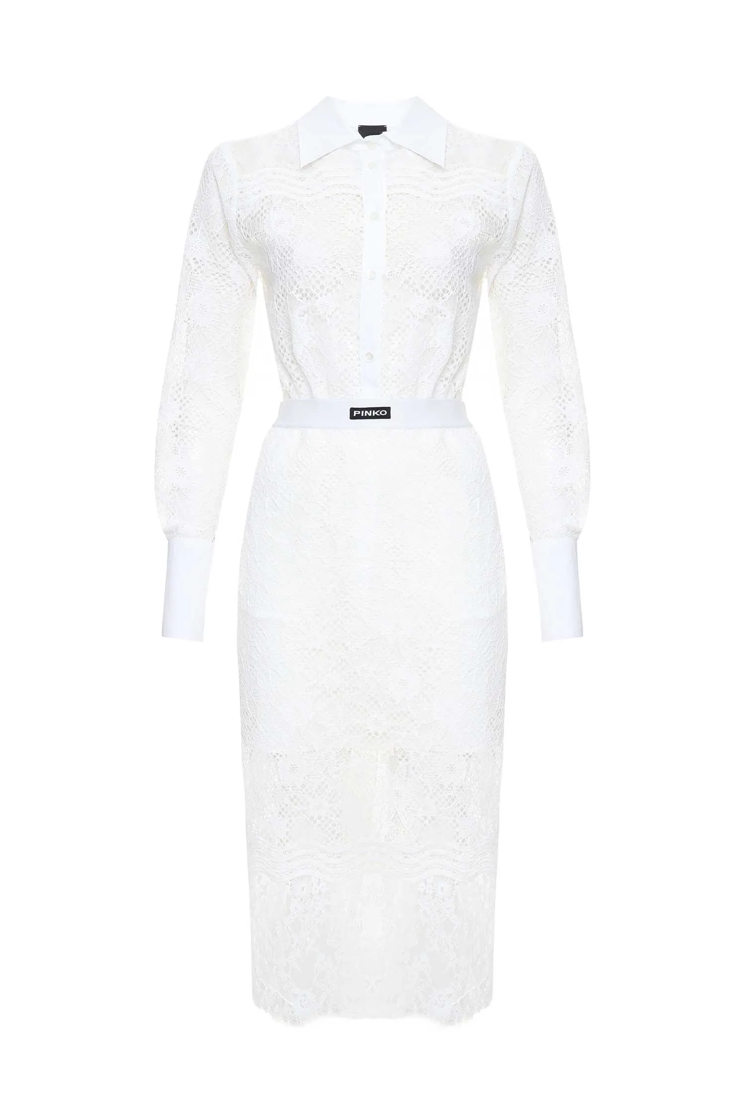 КОСТЮМ БЕЛЫЙ ИЗ ГИПЮРА, РУБАШКА ПРИТАЛЕННАЯ+ЮБКА ДЛИННАЯ С РАЗРЕЗОМ, ДЛ/РУК.