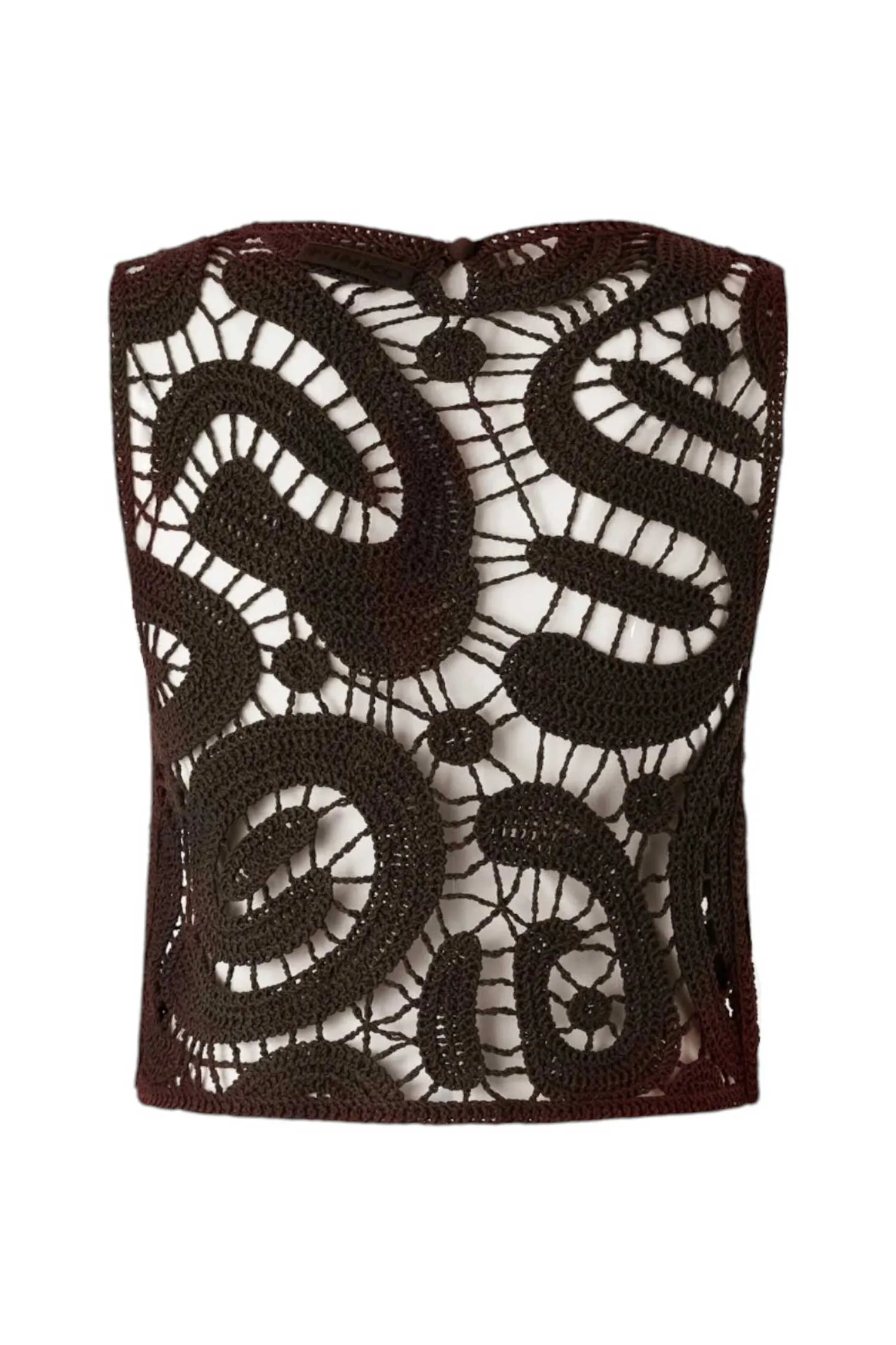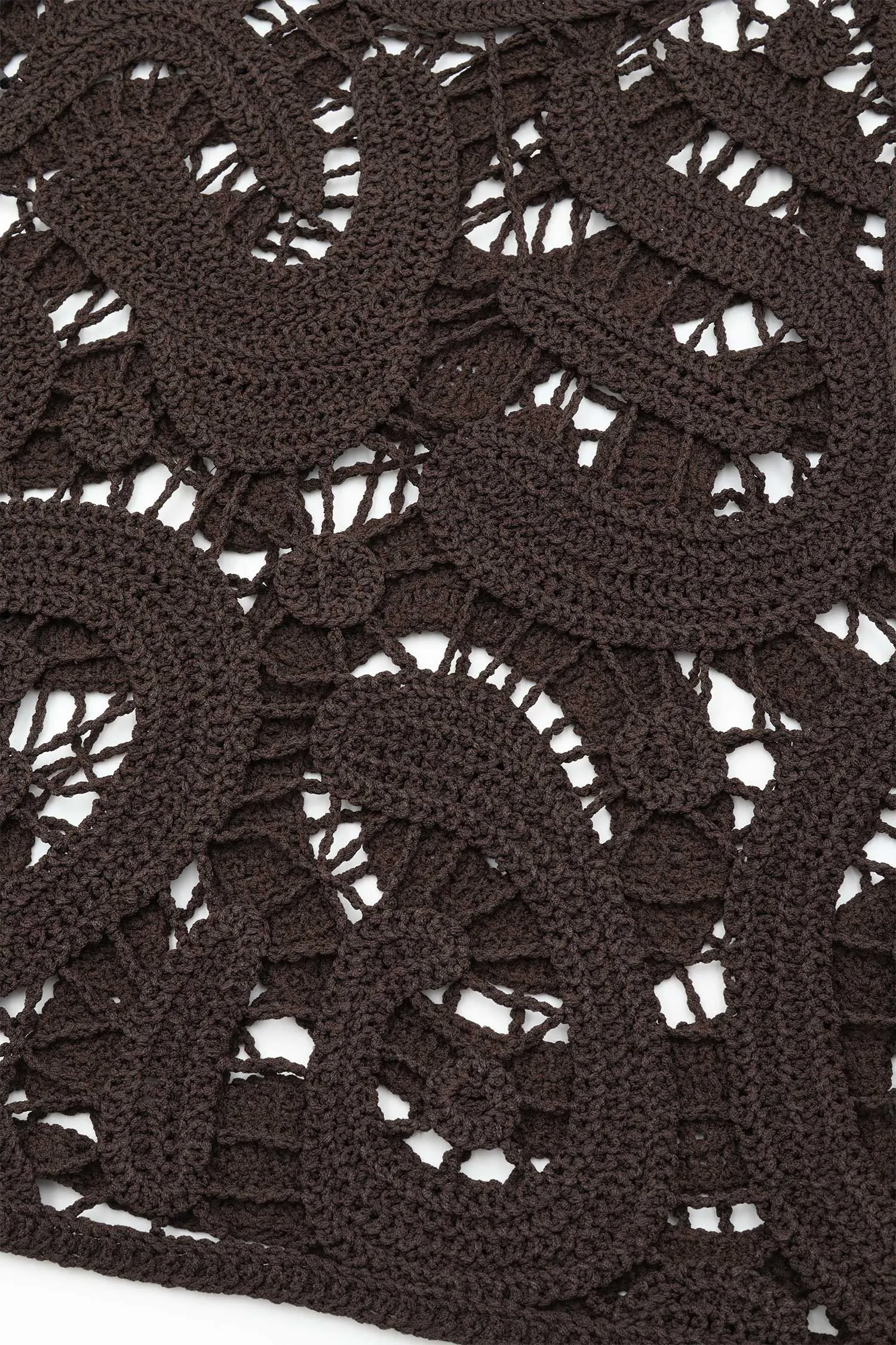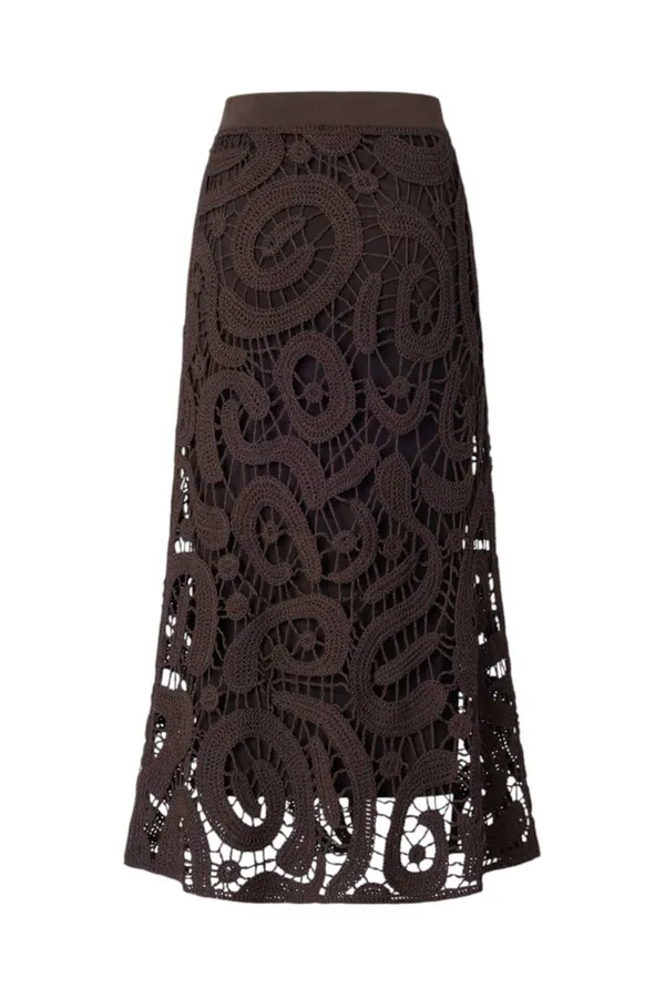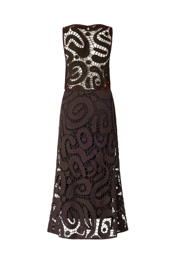 КОСТЮМ КОРИЧНЕВЫЙ С КРУЖЕВНОЙ ОТДЕЛКОЙ, ТОП БЕЗ РУКАВОВ+ЮБКА ДЛИННАЯ, ПОДЪЮБНИК