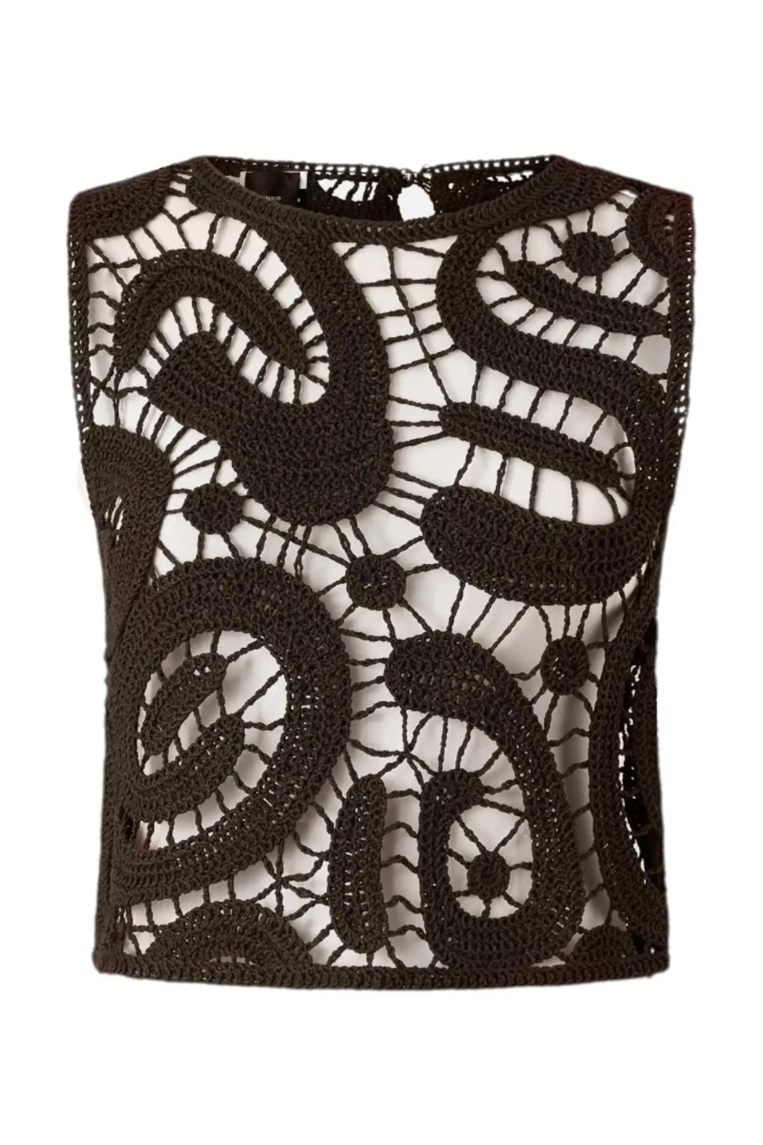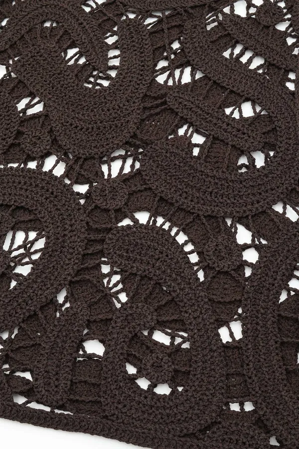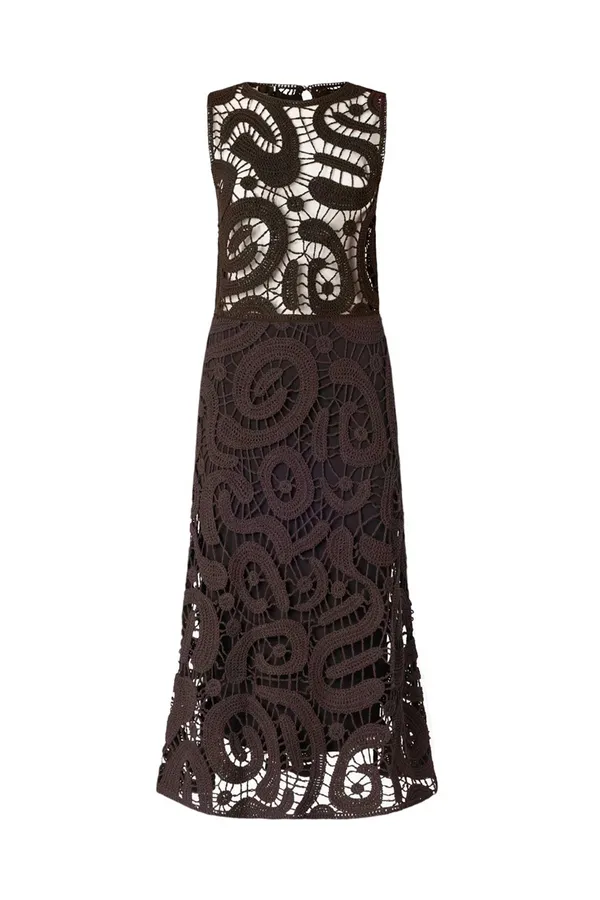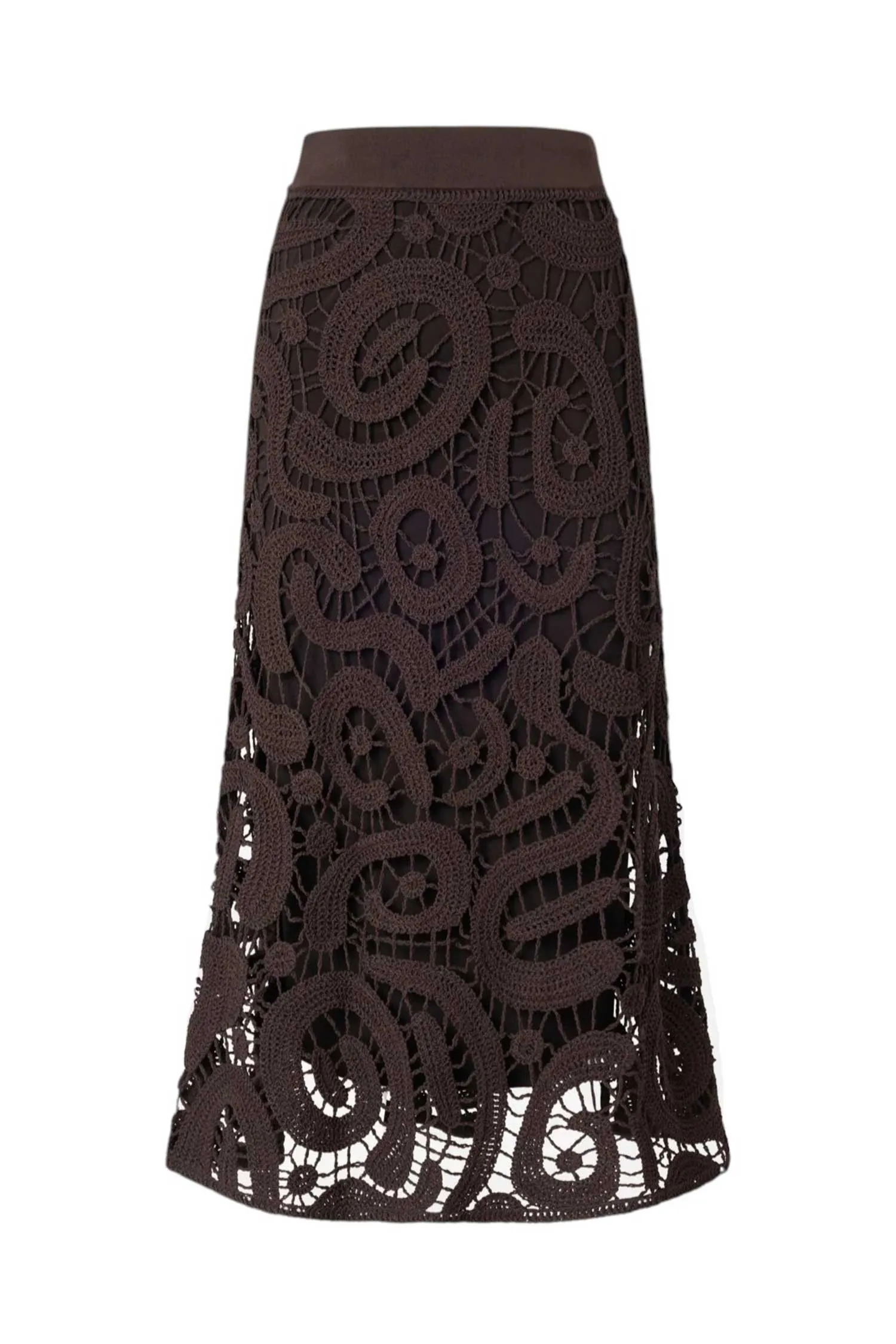 КОСТЮМ КОРИЧНЕВЫЙ С КРУЖЕВНОЙ ОТДЕЛКОЙ, ТОП БЕЗ РУКАВОВ+ЮБКА ДЛИННАЯ, ПОДЪЮБНИК