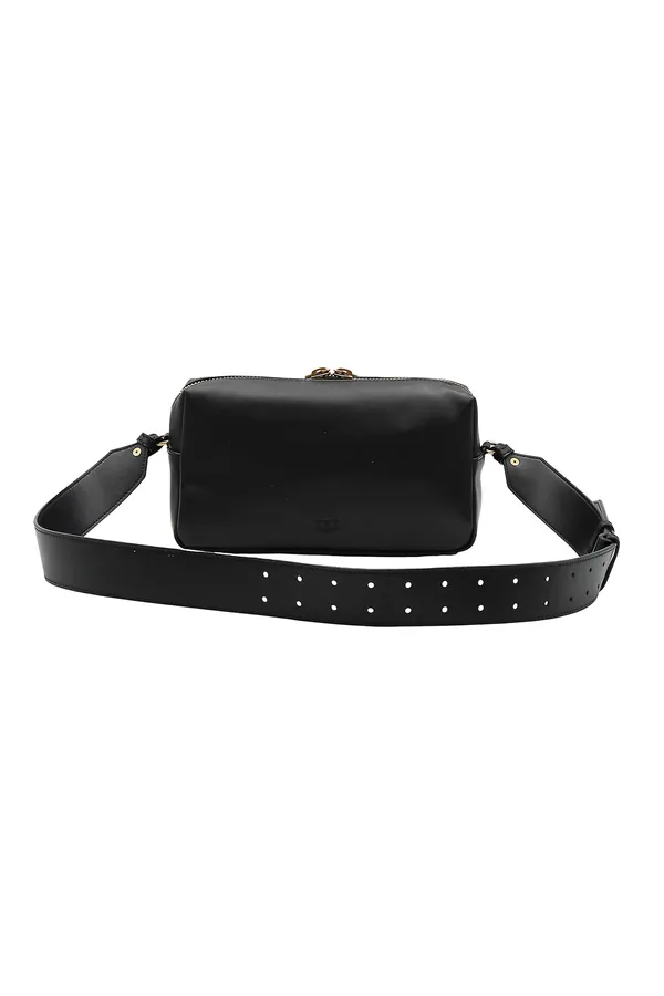 СУМКА SHOULDER HORIZONTAL MEDIUM ЧЁРНАЯ, СТЁГАНАЯ, НА МОЛНИИ, ЗОЛОТИСТОЕ ЛОГО, ШИРОКИЙ РЕГУЛИРУЕМЫЙ РЕМЕНЬ