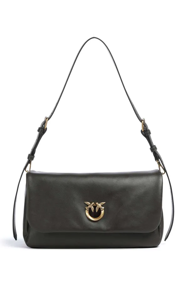 СУМКА CLICK MEDIUM Т/ОЛИВКОВАЯ, КОЖАНАЯ, С КЛАПАНОМ, ЗОЛОТИСТАЯ ПРЯЖКА LOVE BIRDS, РЕГУЛИРУЕМЫЙ РЕМЕНЬ
