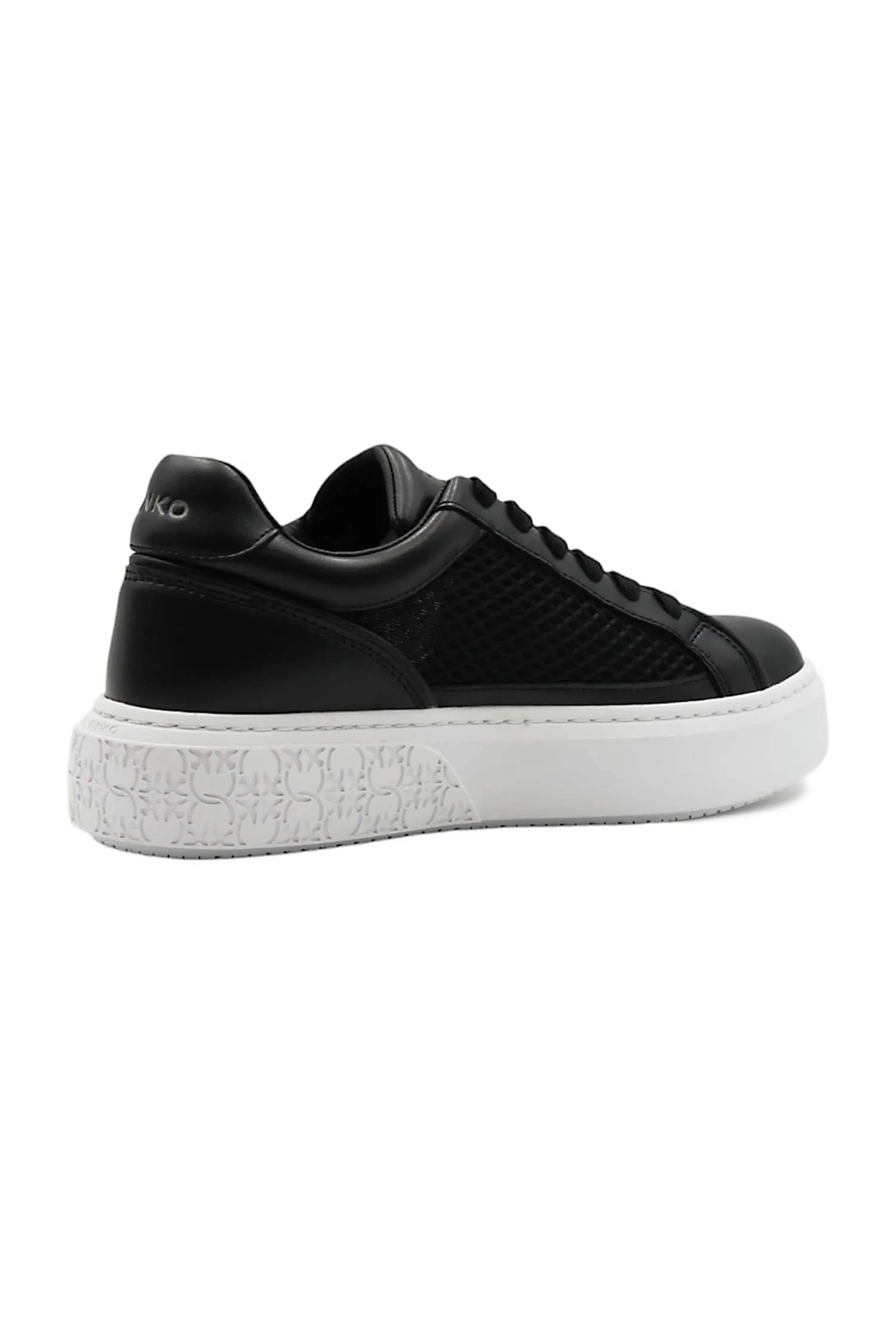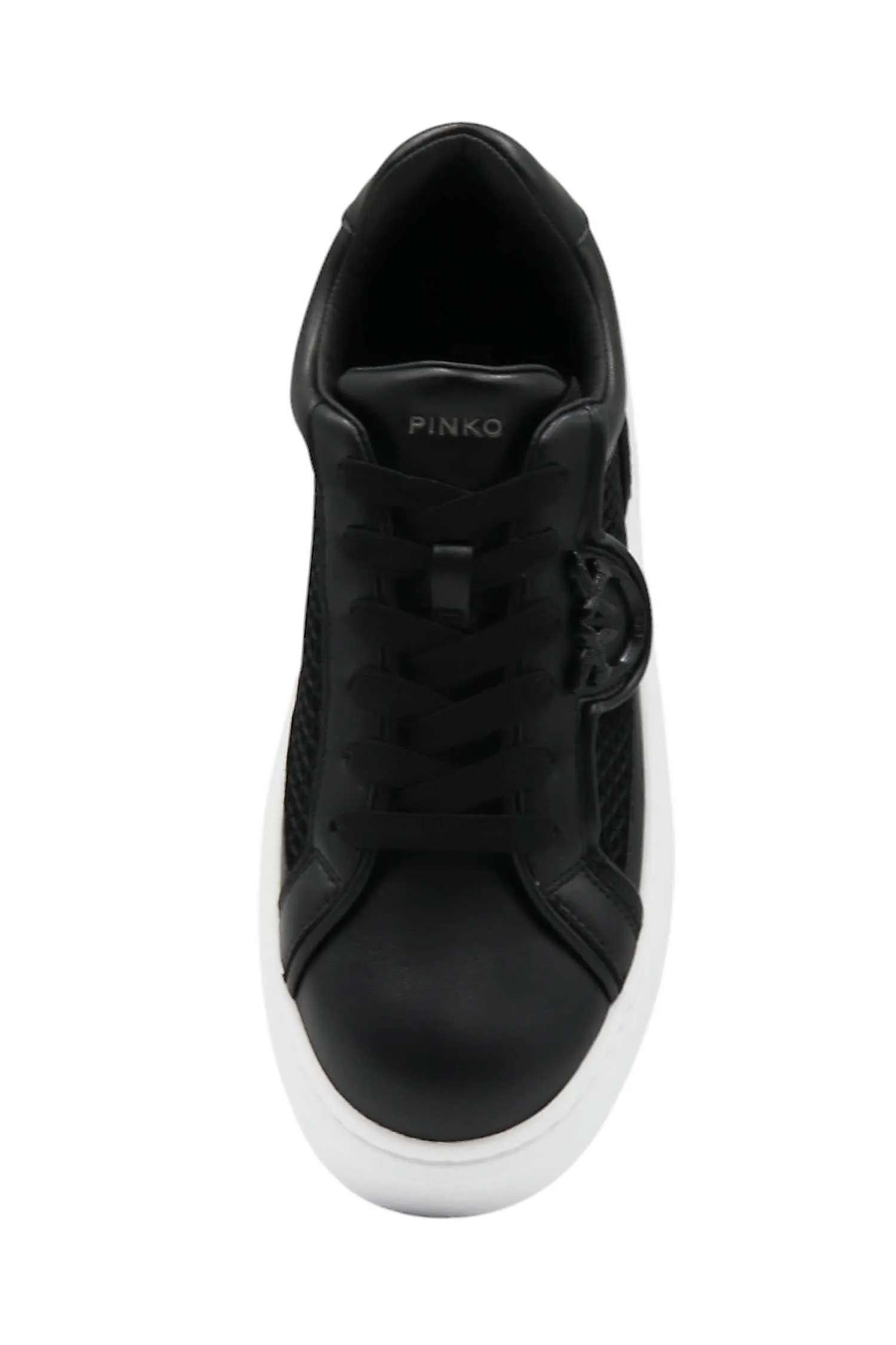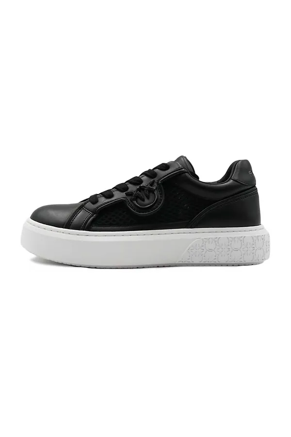 PINKO КЕДЫ YOKO 33 ЧЁРНЫЕ КОМБИНИР., КОЖА+СЕТКА, СБОКУ ЛОГО В ТОН, БЕЛАЯ ПОДОШВА, К=4,5