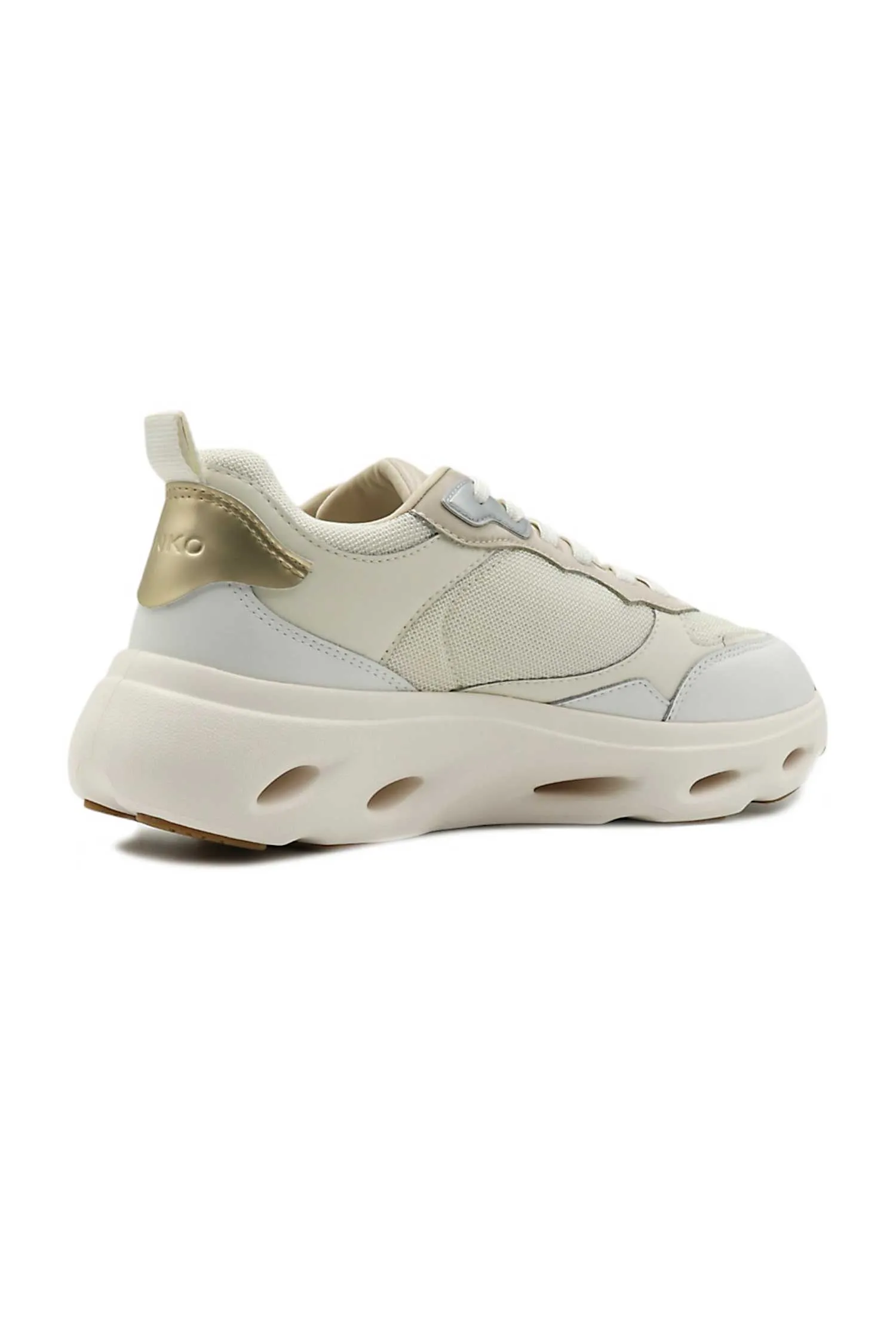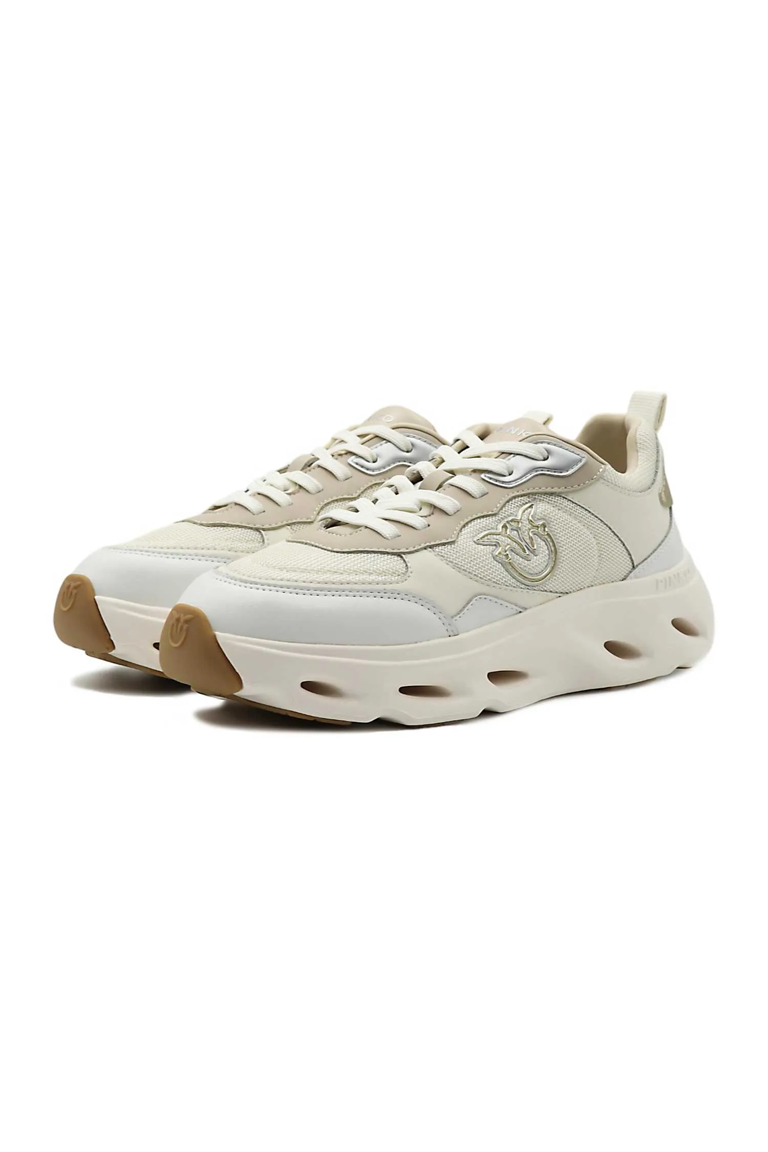 КРОССОВКИ PINK 09 МОЛОЧНО-БЕЛЫЕ КОМБИНИР., ТЕКСТИЛЬ+КОЖА, БЕЖЕВЫЕ И СЕРЕБРИСТ.ВСТАВКИ, КРУГЛОЕ ЛОГО, ПЕРФОРИР.ПОДОШВА, К=5,5
