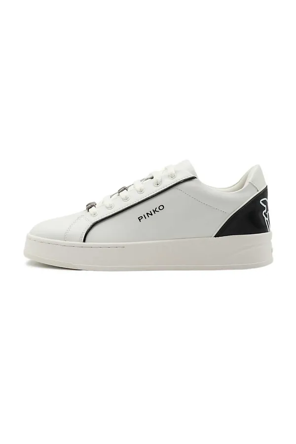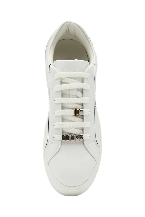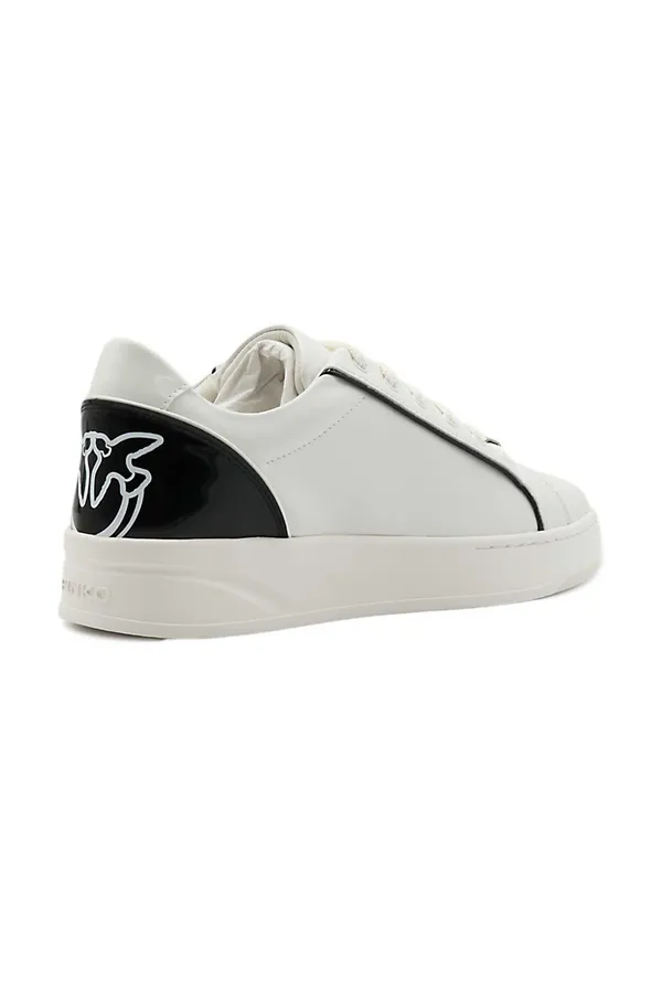КЕДЫ IRIS 01 БЕЛЫЕ С ЧЁРНОЙ ОКАНТОВКОЙ, КОЖАНЫЕ, ЧЁРНАЯ ЛАКОВАЯ ПЯТКА С ЛОГО, НА ШНУРКАХ МЕТАЛЛ.ЛОГО-БУКВЫ, К=3,5