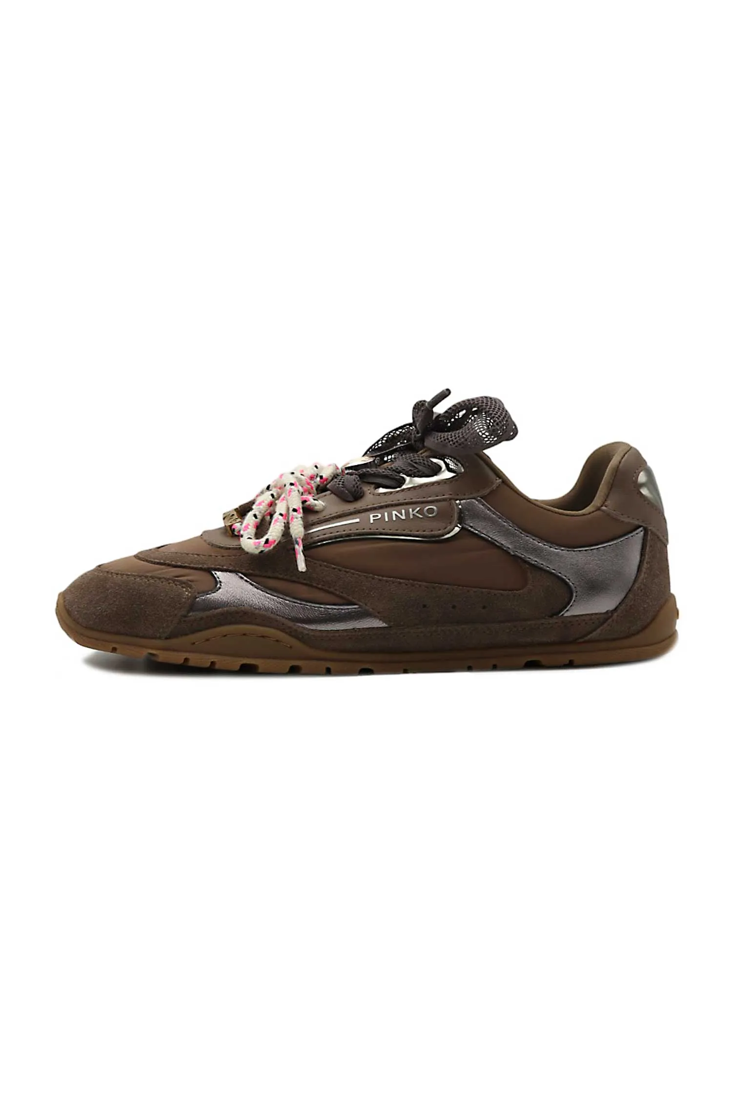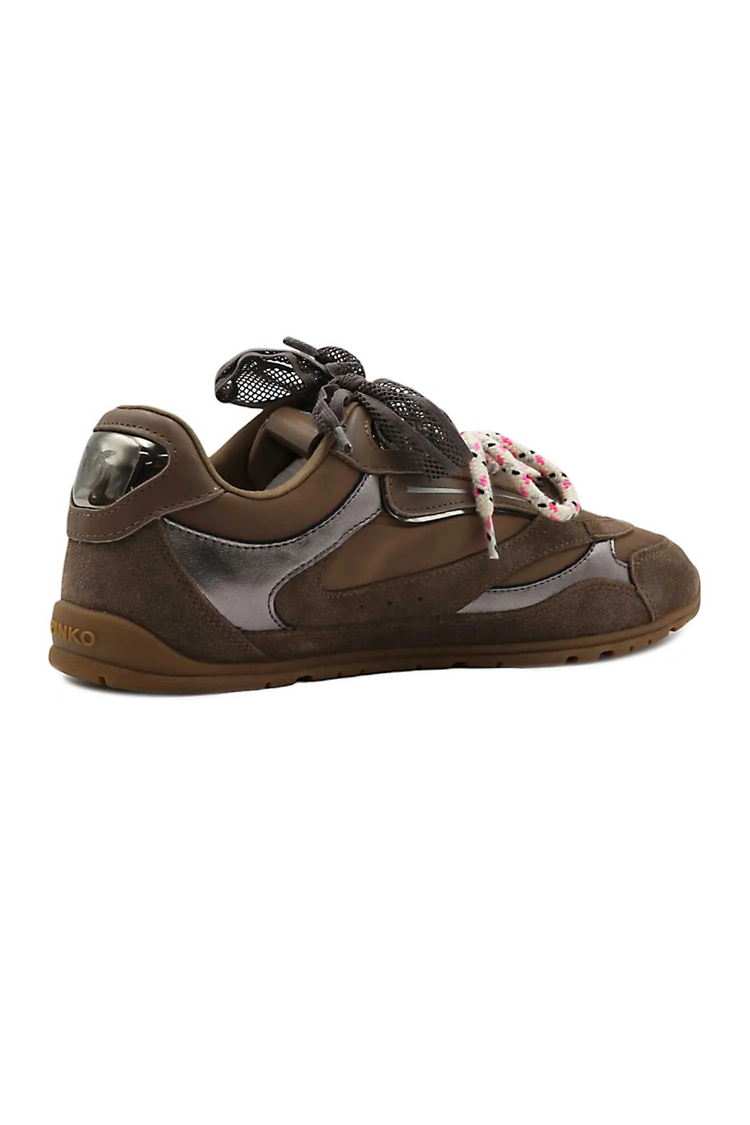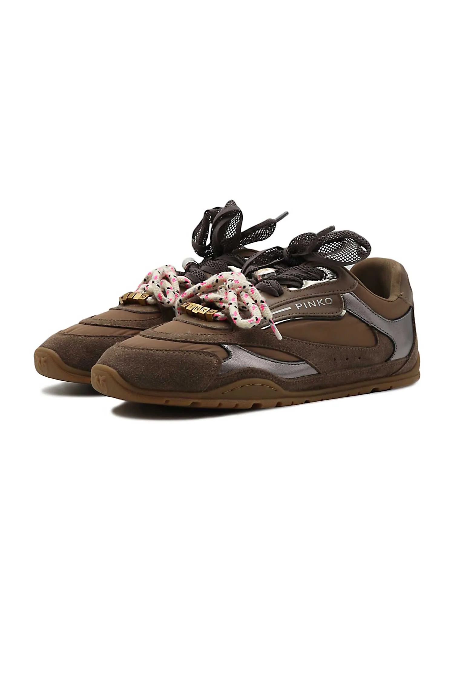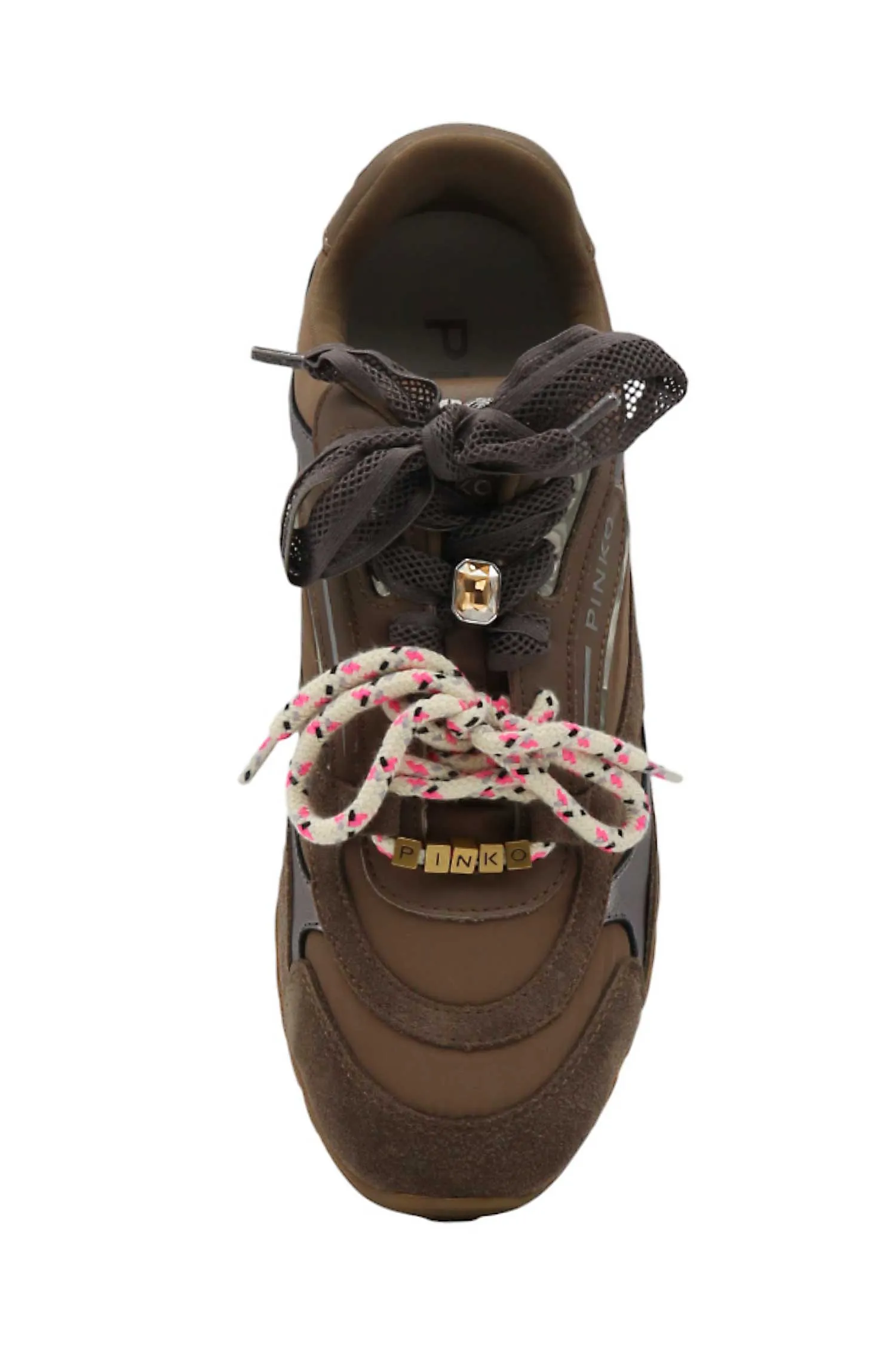 КРОССОВКИ YULIA 01 КОРИЧНЕВЫЕ КОМБИНИР., ЗАМША+НЕЙЛОН, БЛЕСТЯЩИЕ ВСТАВКИ, ДВОЙНЫЕ ШНУРКИ, МЕТАЛЛ.ЛОГО-БУКВЫ+ШАРМЫ, К=2,5