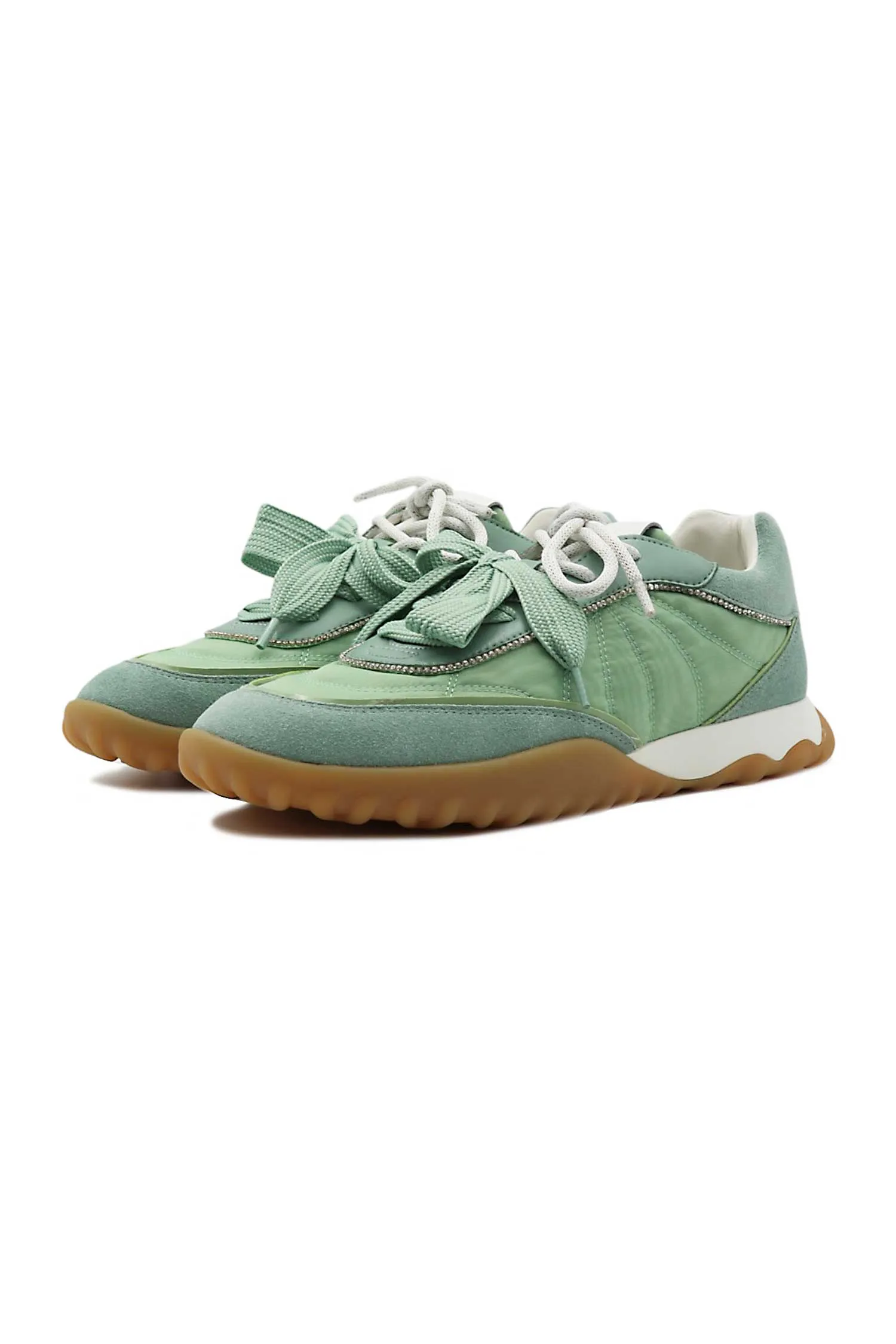 КРОССОВКИ GEA 02 МЯТНЫЕ КОМБИНИР., ЗАМША+НЕЙЛОН, ОКАНТОВКА ЦЕПОЧКОЙ ИЗ СТРАЗ, ДВОЙНЫЕ ШНУРКИ, К=3