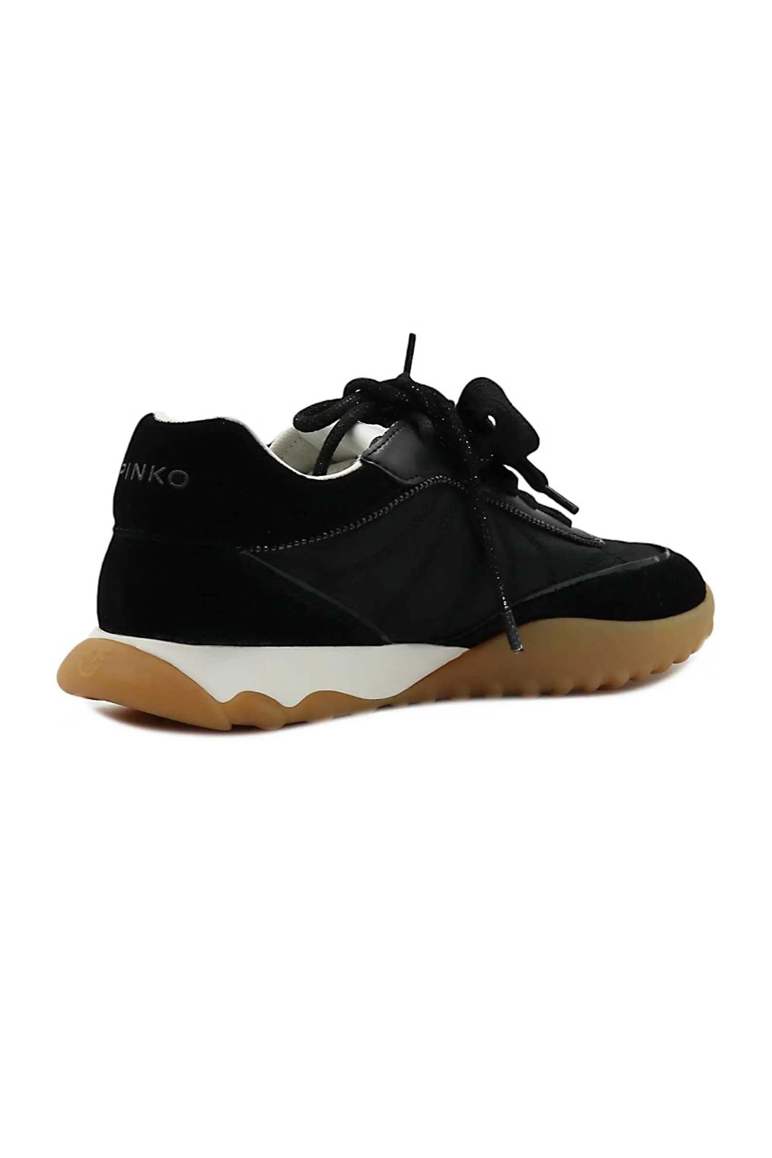 КРОССОВКИ GEA 02 ЧЁРНЫЕ КОМБИНИР., ЗАМША+НЕЙЛОН, ОКАНТОВКА ЦЕПОЧКОЙ ИЗ СТРАЗ, ДВОЙНЫЕ ШНУРКИ, К=3