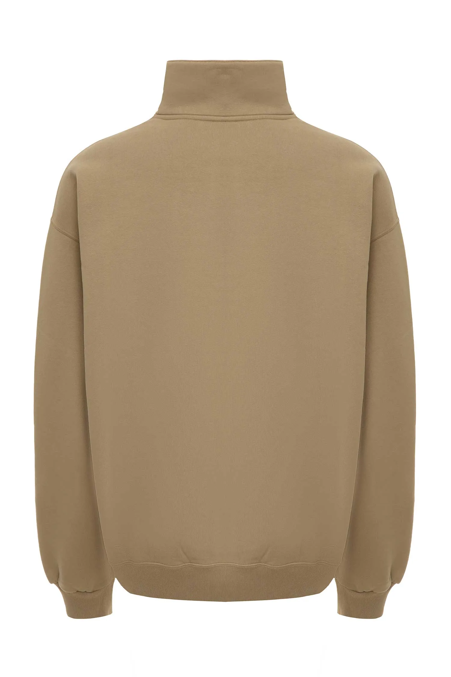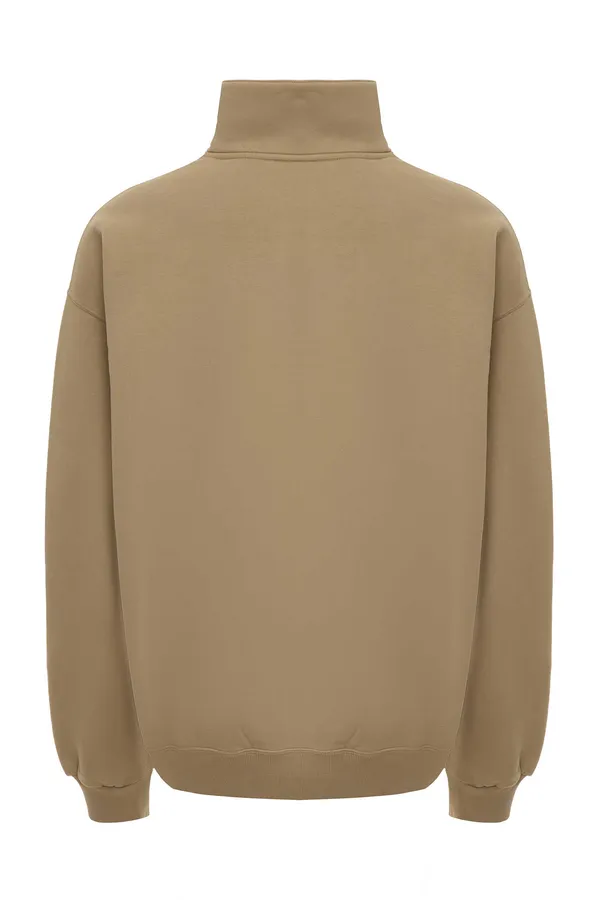 СВИТШОТ M.313 Т/БЕЖЕВЫЙ, УТЕПЛЁННЫЙ, НА ГРУДИ МОЛОЧНАЯ НАШИВКА-ЛОГО, ВОРОТ-СТОЙКА НА МОЛНИИ