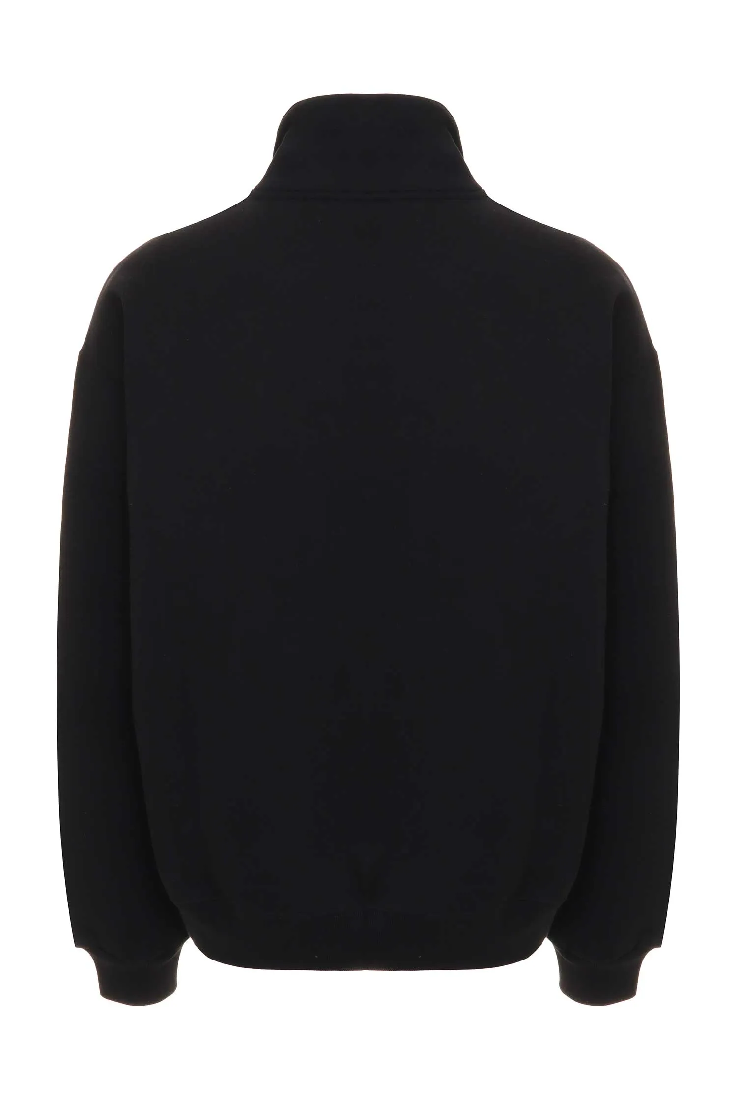 СВИТШОТ M.313 ЧЁРНЫЙ, УТЕПЛЁННЫЙ, НА ГРУДИ МОЛОЧНАЯ НАШИВКА-ЛОГО, ВОРОТ-СТОЙКА НА МОЛНИИ