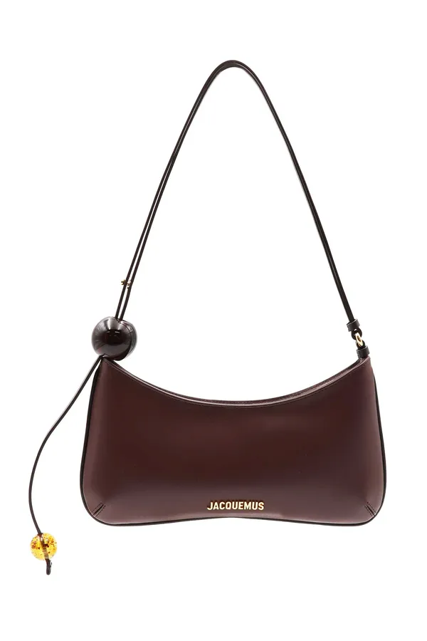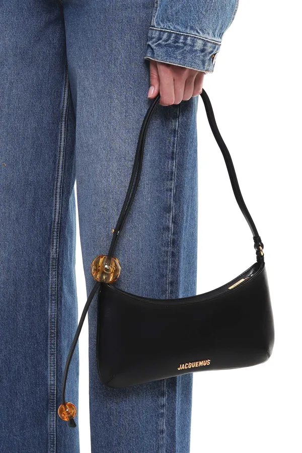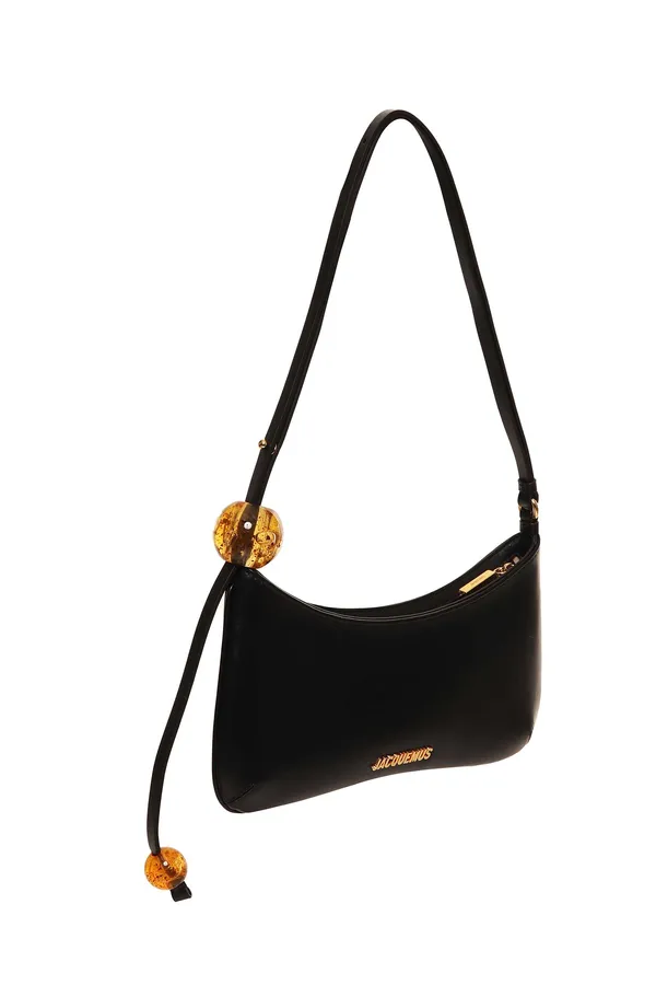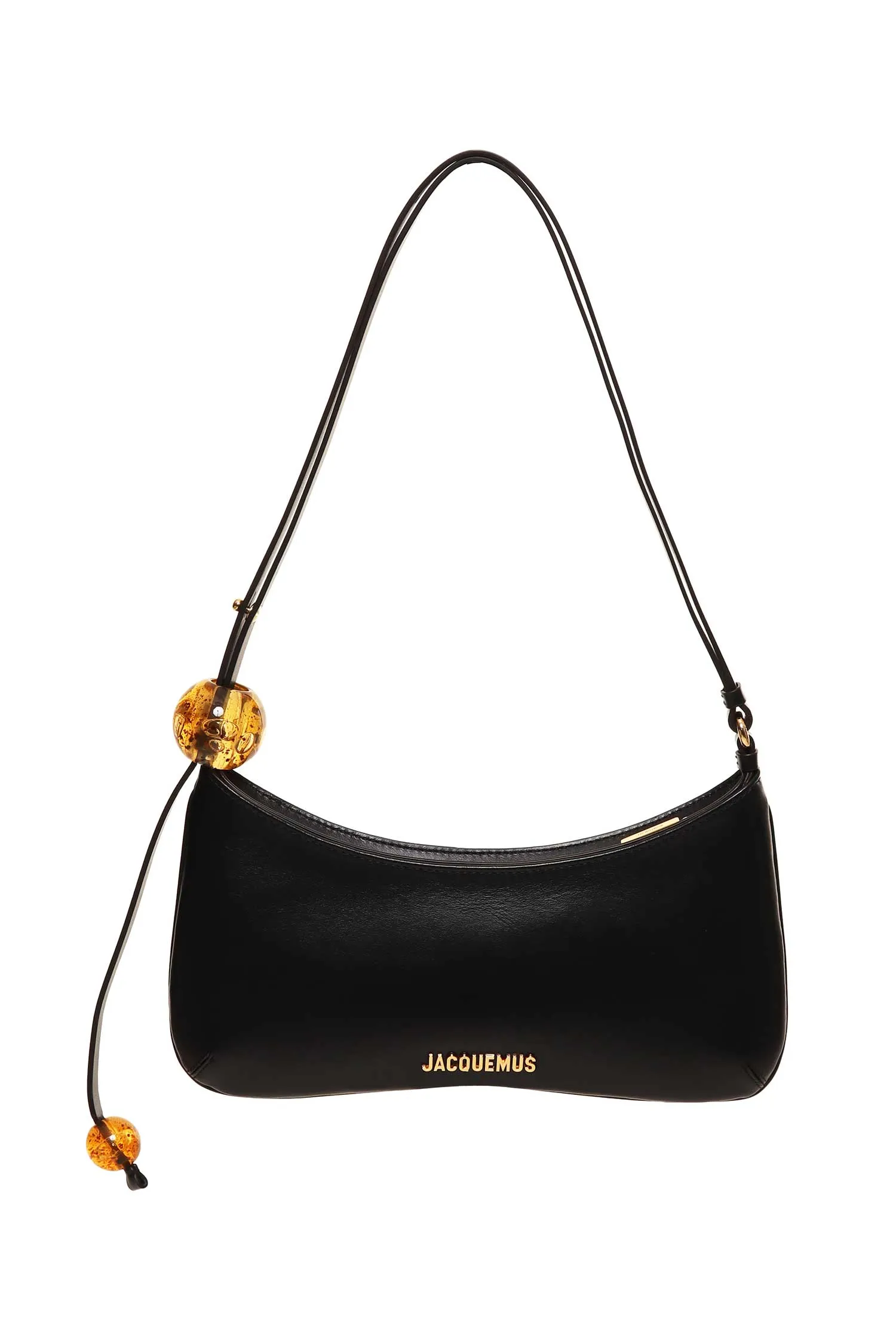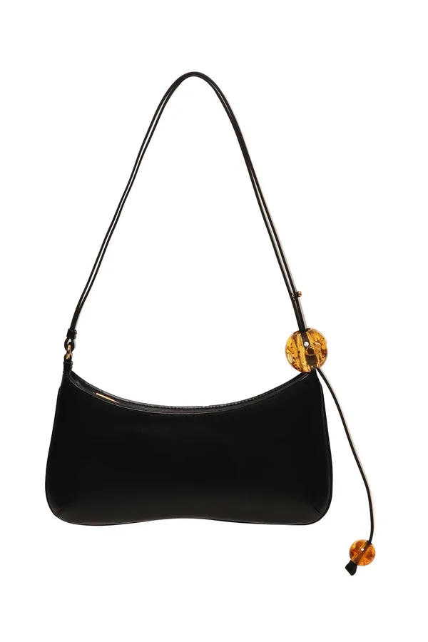 СУМКА LE BISOU PERLE ЧЁРНАЯ, МАЛЕНЬКАЯ, ГЛАДКАЯ КОЖА, НА МОЛНИИ, КРУПНАЯ КОРИЧН.БУСИНА, ЗОЛОТИСТ.ЛОГО-НАДПИСЬ, РЕМЕШОК