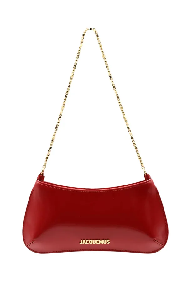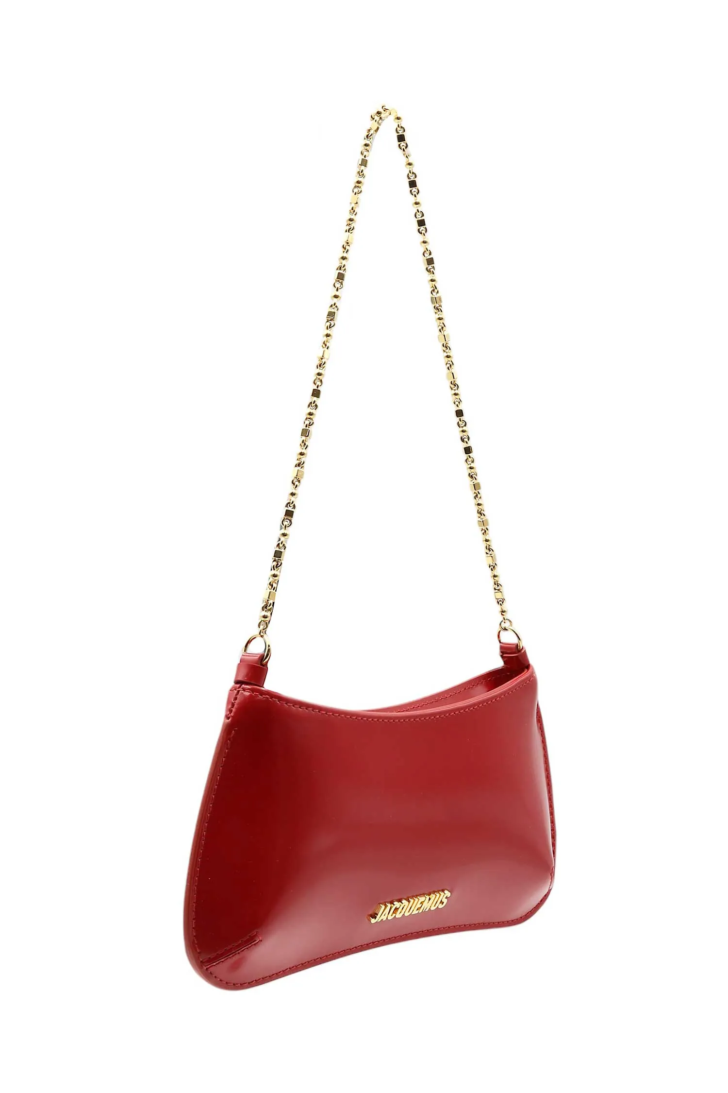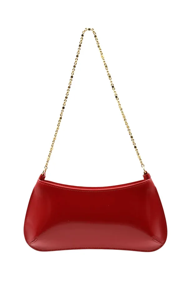 СУМКА LE PETIT BISOU CHAINE SMALL КРАСНАЯ ИЗ ЛАКОВОЙ КОЖИ,НА МОЛНИИ, ЗОЛОТИСТАЯ ЛОГО-НАДПИСЬ И ЦЕПОЧКА