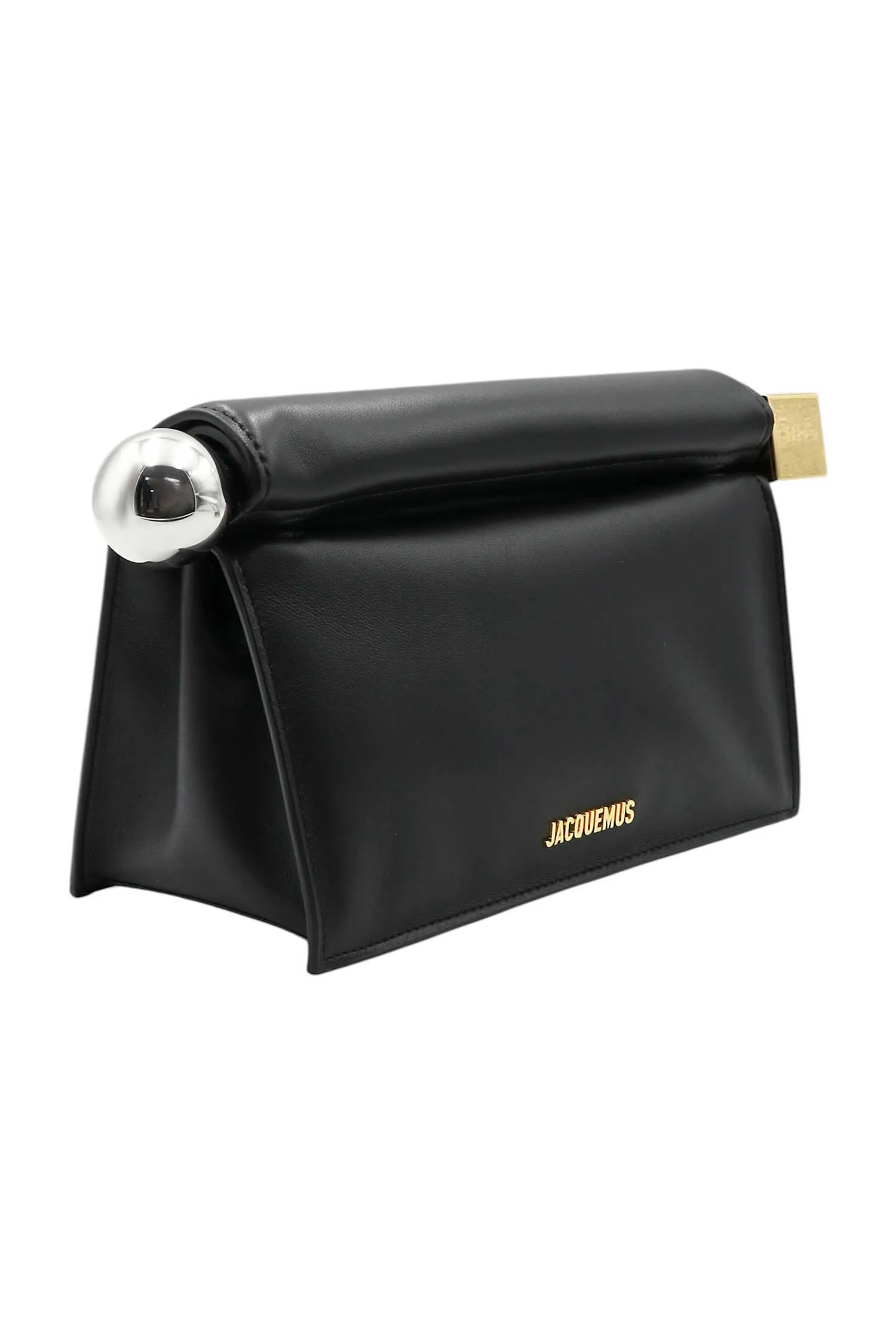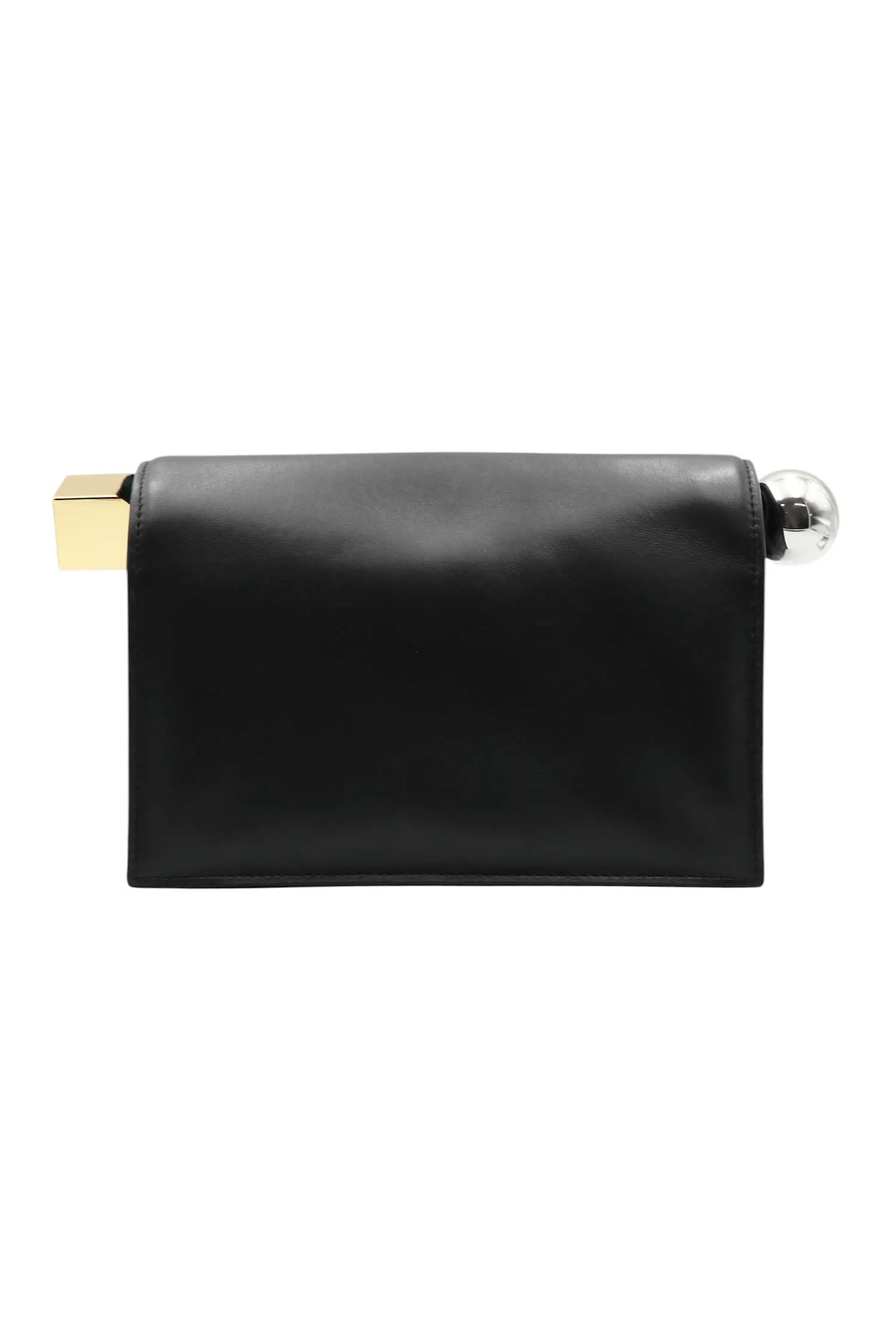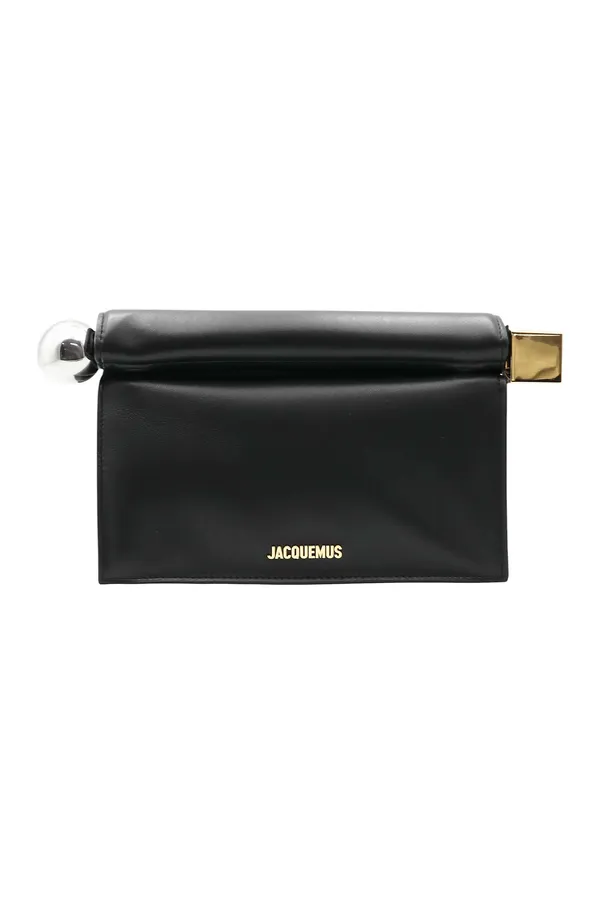 КЛАТЧ LA POCHETTE ROND CARRE ЧЁРНАЯ ИЗ КОЖИ, СКЛАДНАЯ, НА МАГНИТАХ, ГЕОМЕТРИЧ.УКРАШЕНИЯ, ЗОЛОТИСТАЯ ЛОГО-НАДПИСЬ