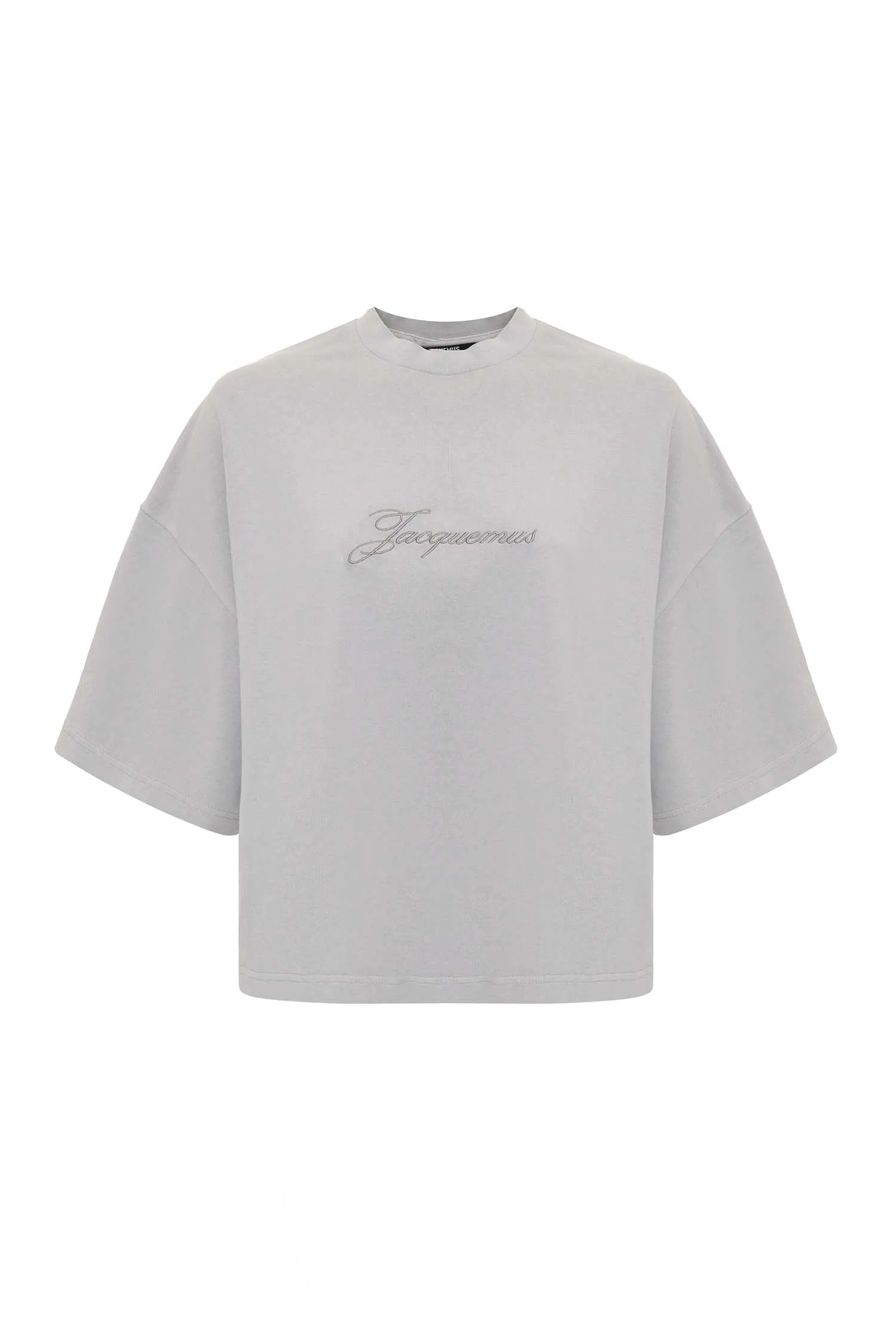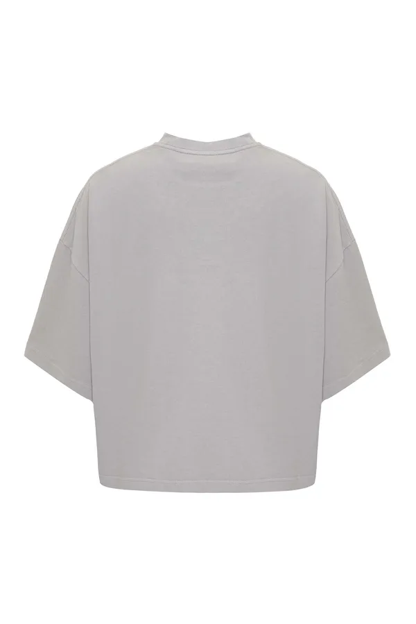 ФУТБОЛКА СВ/СЕРАЯ, УКОРОЧЕННАЯ, ПЛОТНАЯ, СВОБОДНАЯ, НА ГРУДИ ВЫШИТАЯ ЛОГО-НАДПИСЬ В ТОН