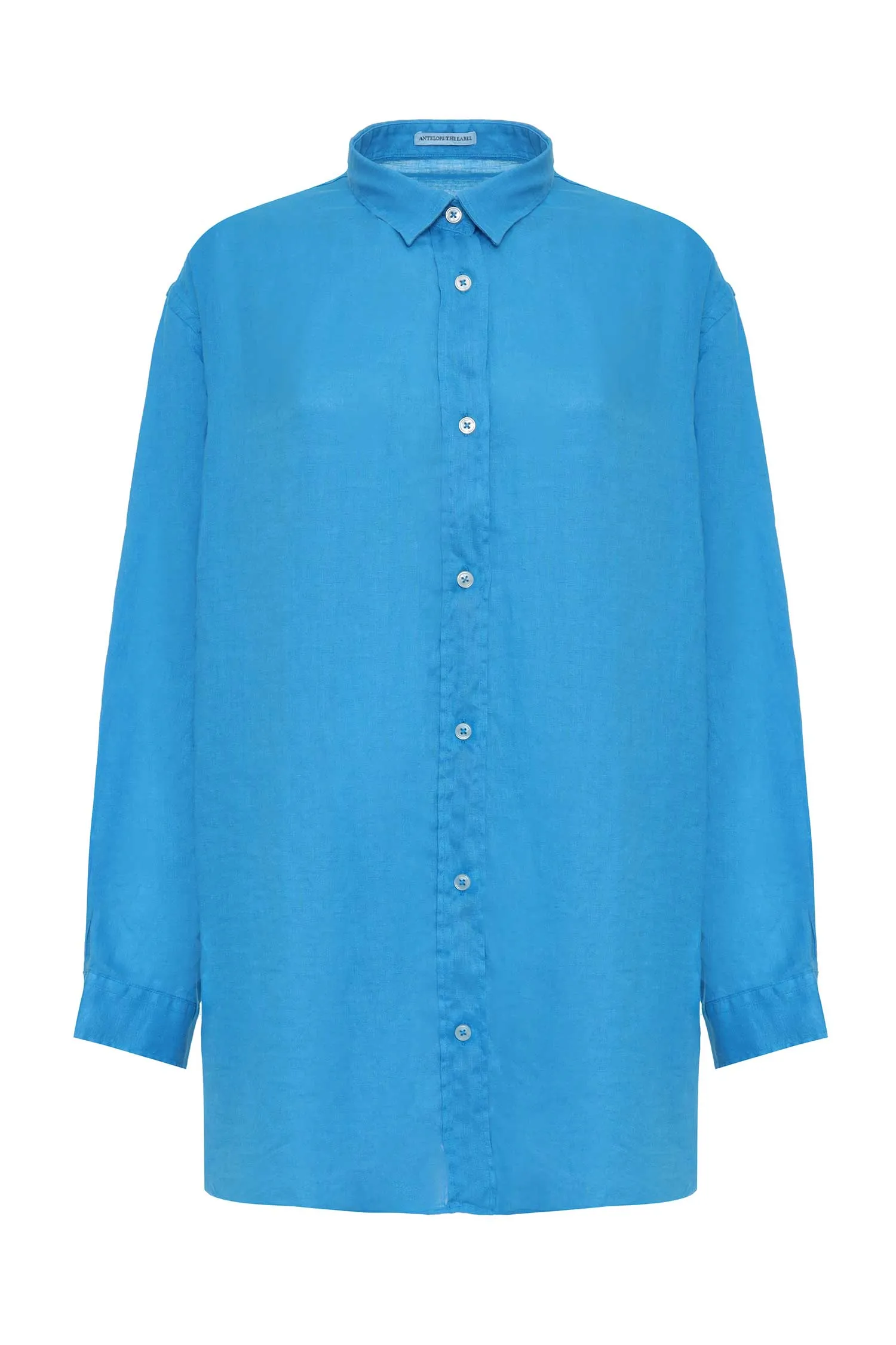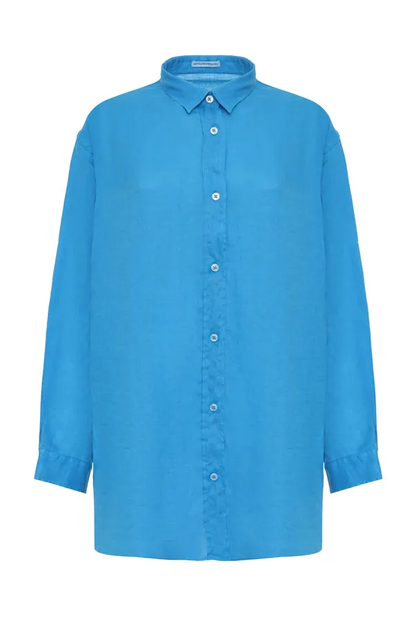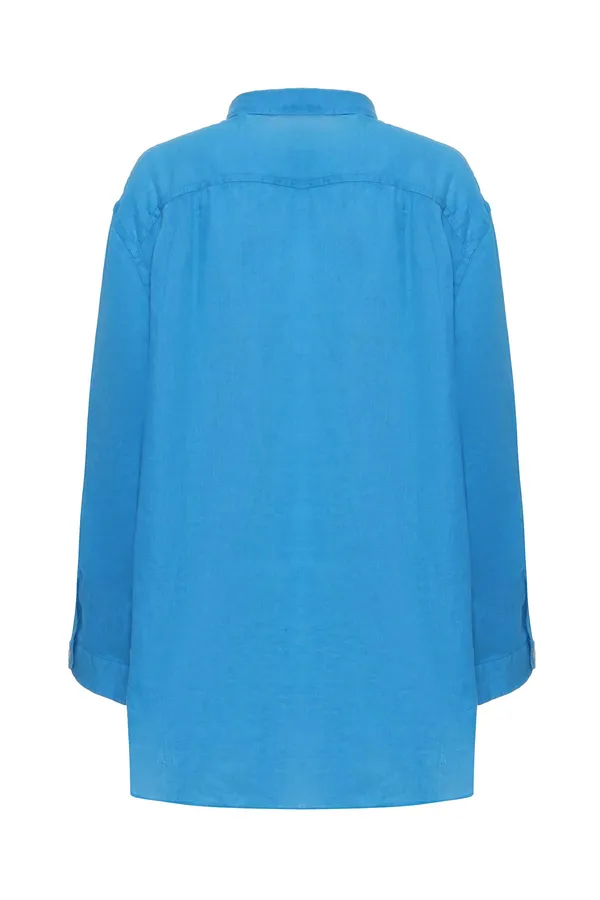 РУБАШКА M.1 ЯРКО-СИНЯЯ ЛЁН, СВОБОДНАЯ