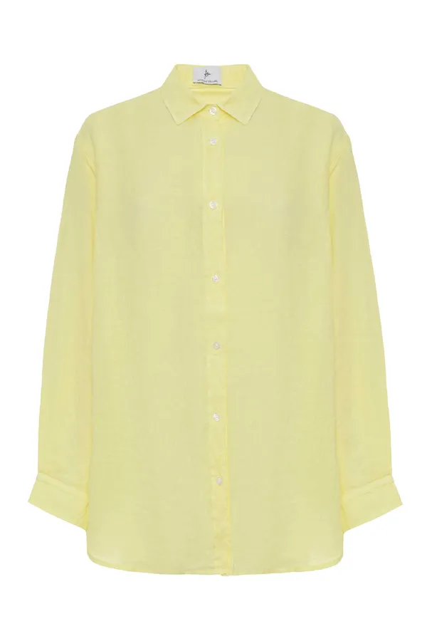 РУБАШКА M.1 ЖЁЛТАЯ ЛЁН, СВОБОДНАЯ