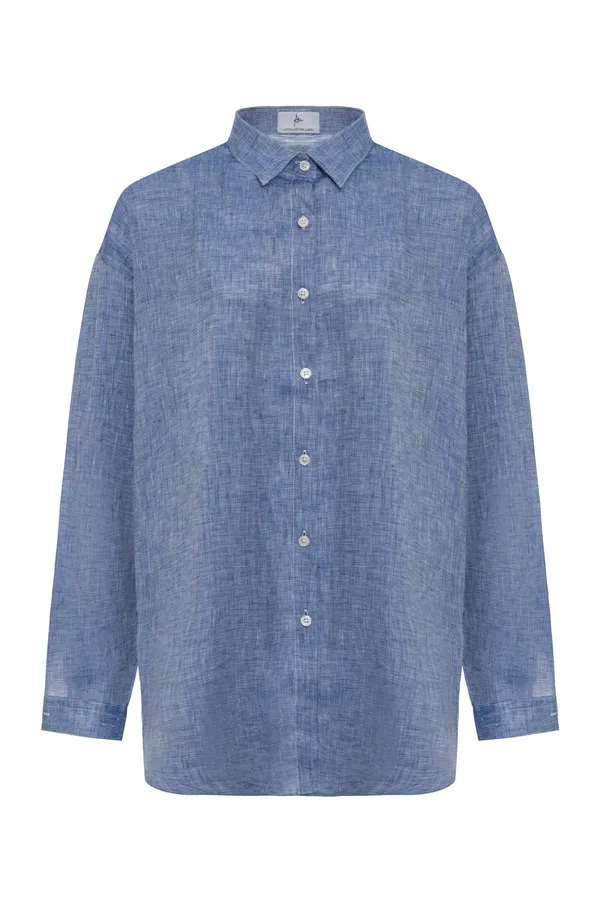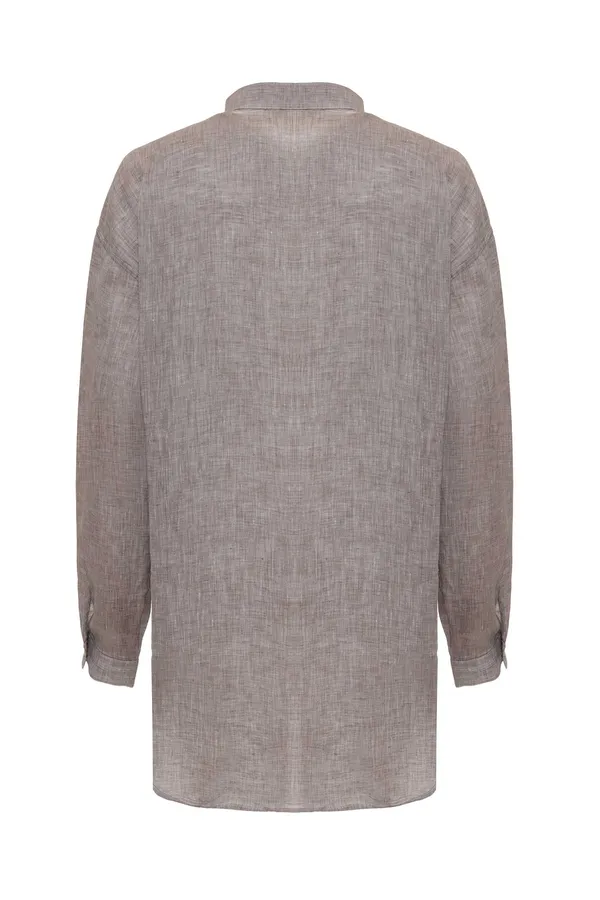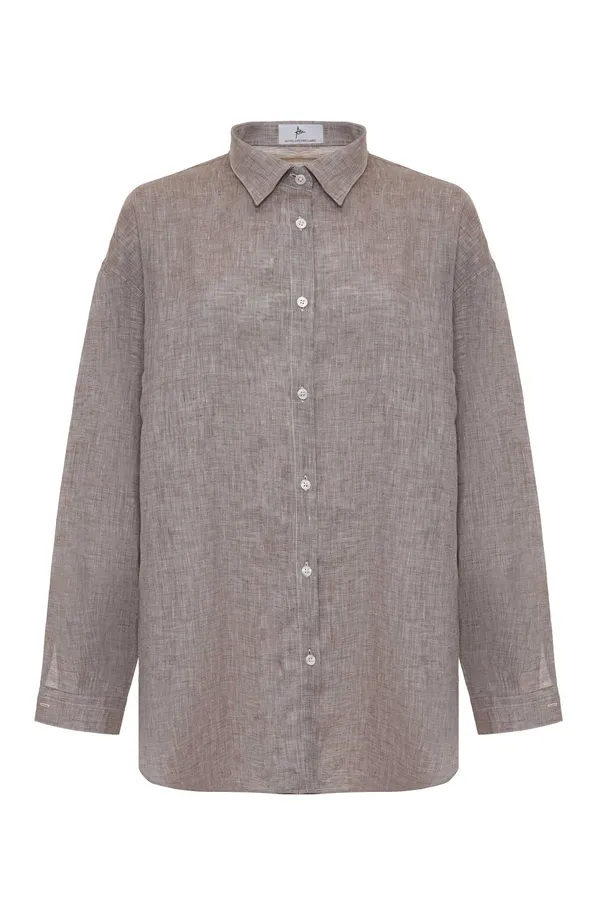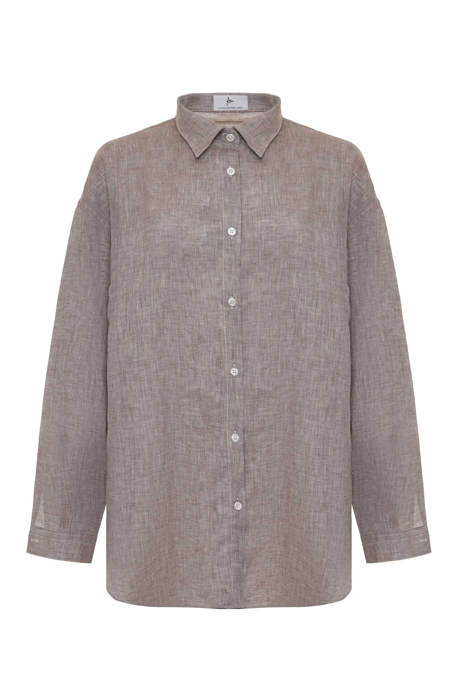 ANTELOPE РУБАШКА M.02 БЕЖЕВО-КОРИЧНЕВАЯ МЕЛАНЖ, ЛЁН, СВОБОДНАЯ