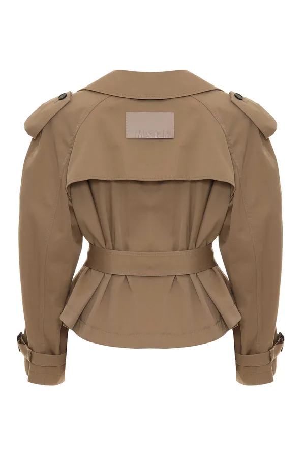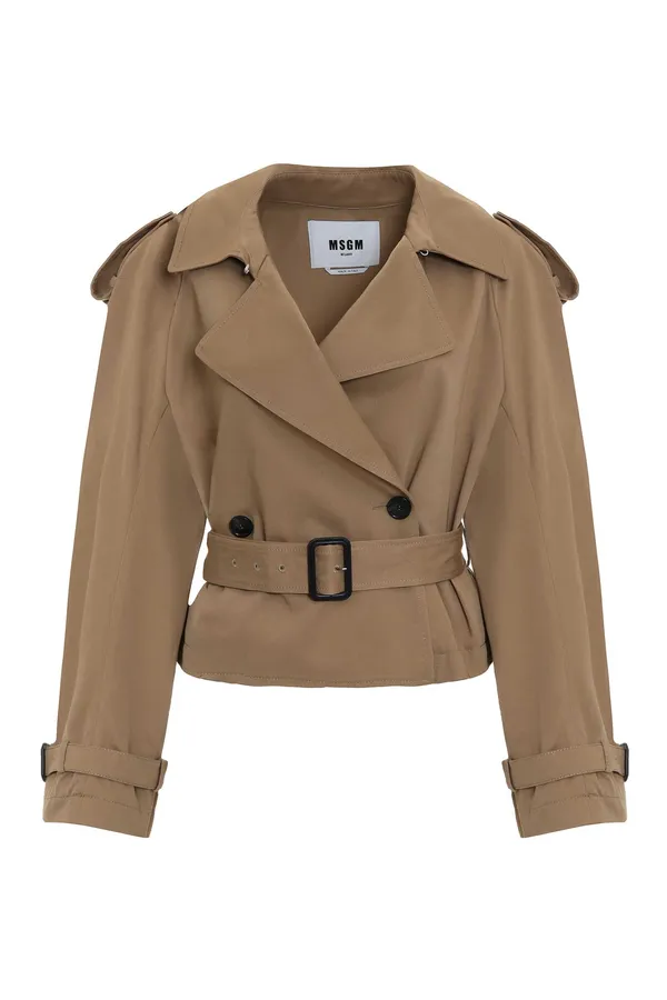 ТРЕНЧ БЕЖЕВЫЙ, УКОРОЧЕННЫЙ, ДВУБОРТНЫЙ, БЕЗ ПОДКЛАДКИ, РУКАВА-РЕГЛАН, СЗАДИ КОКЕТКА, ПОГОНЫ, ПОЯС