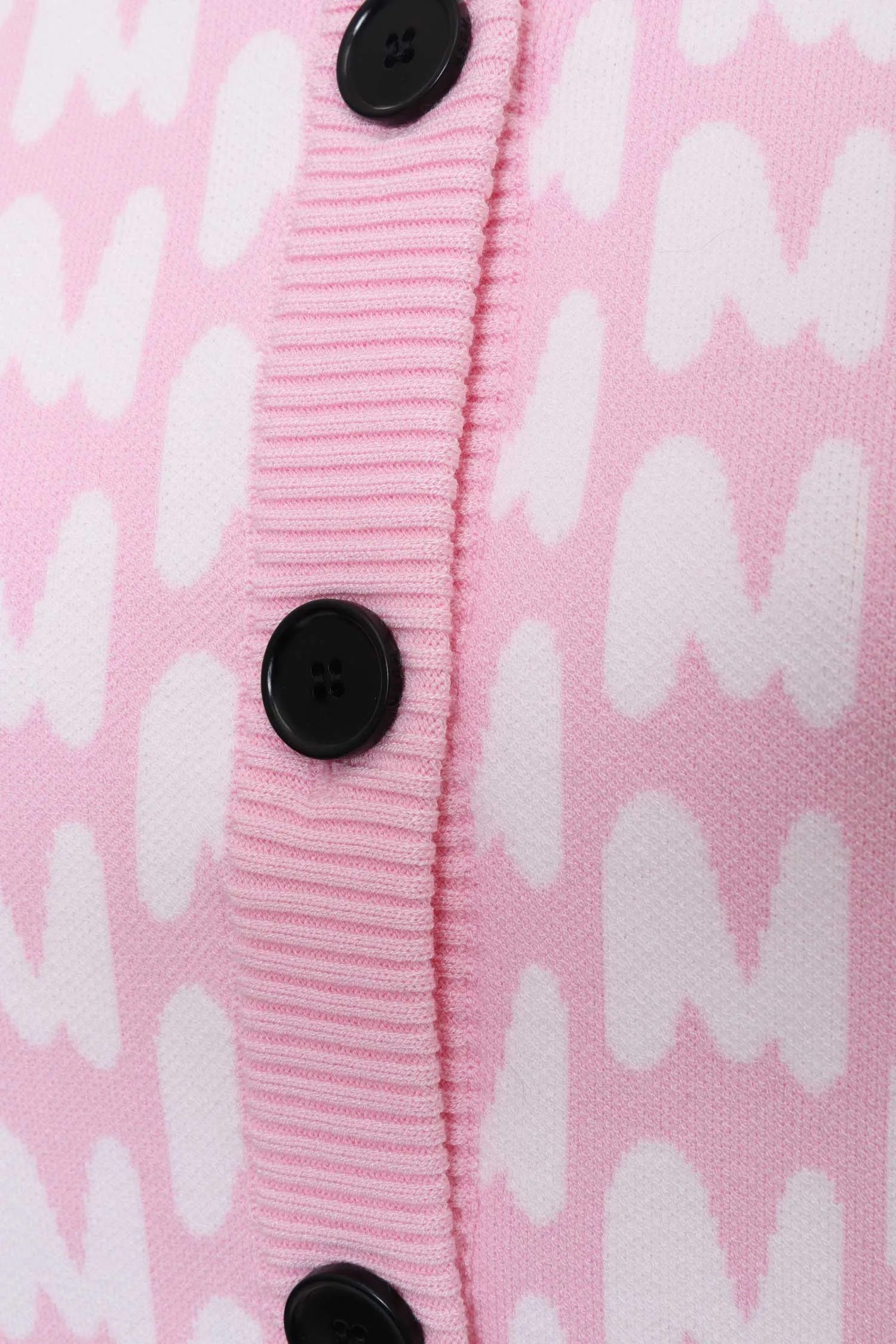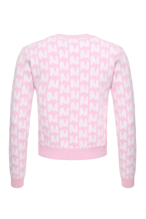 КАРДИГАН M.212 РОЗОВЫЙ В БЕЛОЕ ЛОГО, УКОРОЧЕННЫЙ, ЧЁРНЫЕ ПУГОВИЦЫ