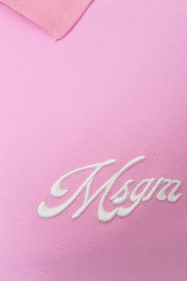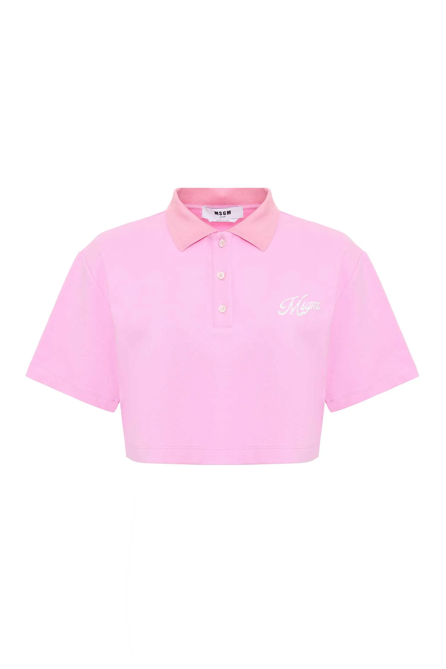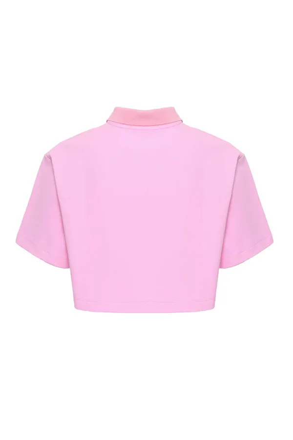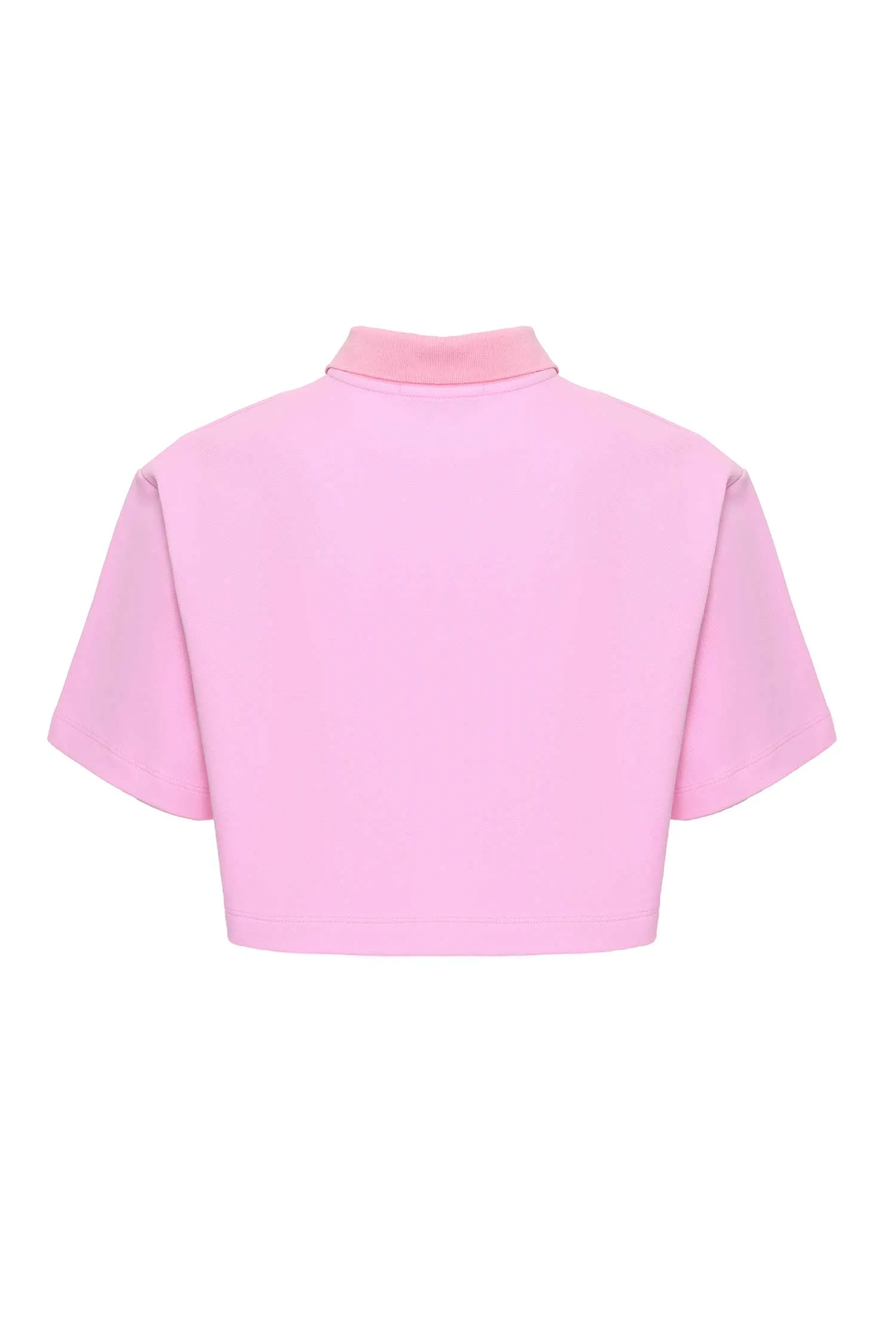 ПОЛО РОЗОВОЕ ПИКЕ, ПЛОТНОЕ, УКОРОЧЕННОЕ, НА ГРУДИ ВЫШИТАЯ БЕЛАЯ ЛОГО-НАДПИСЬ