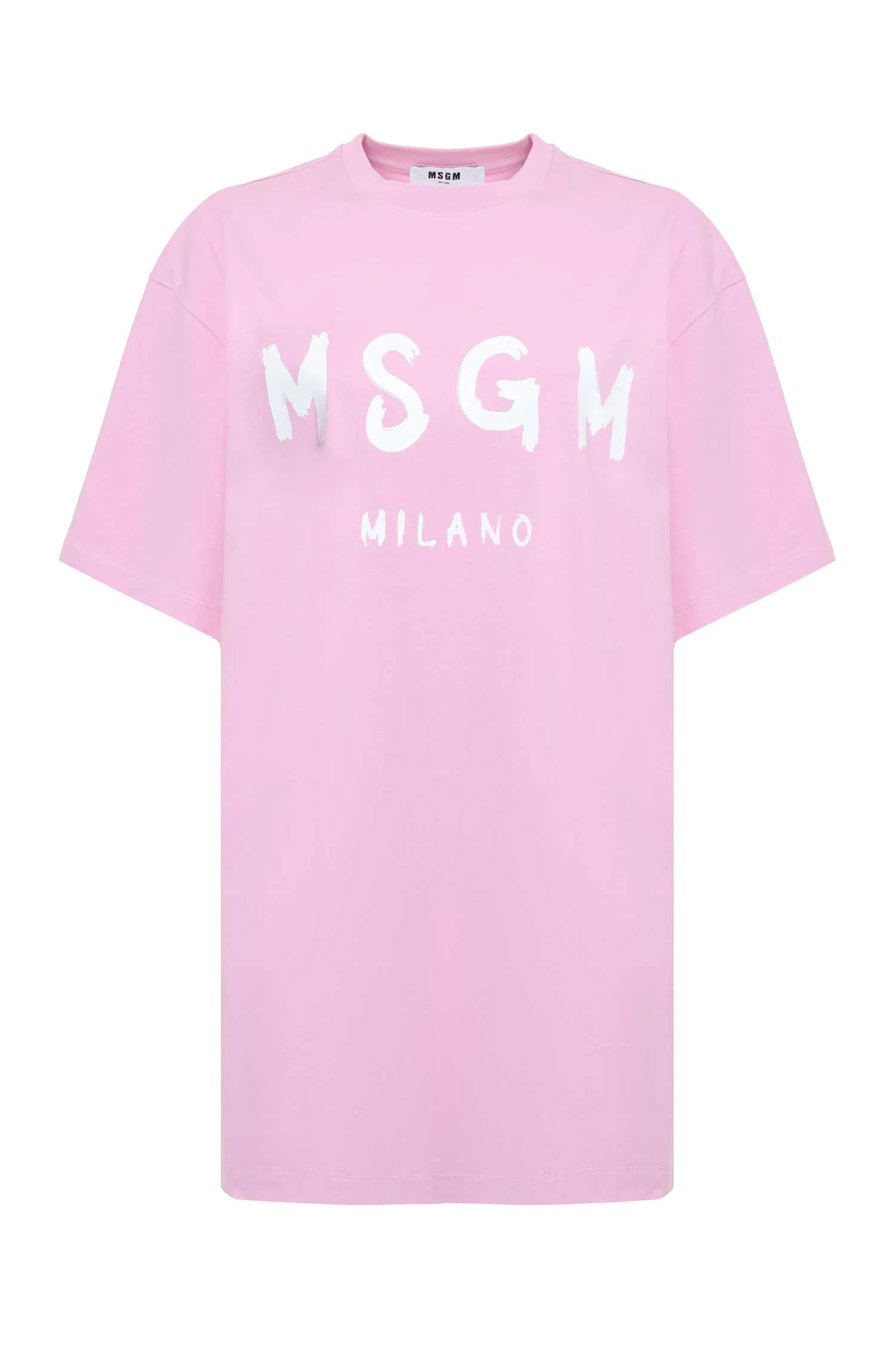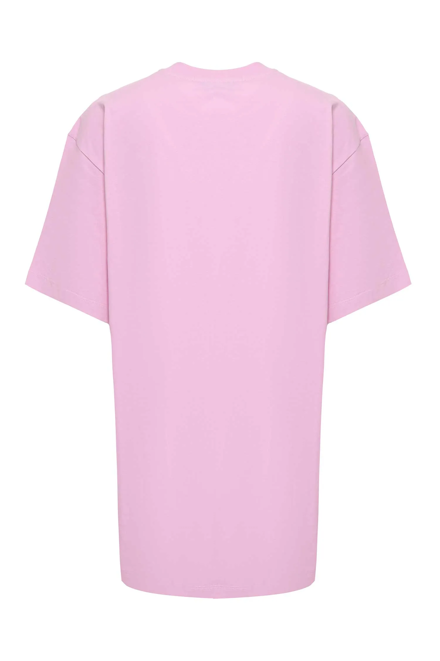 ПЛАТЬЕ-ФУТБОЛКА РОЗОВОЕ, НА ГРУДИ КРУПНОЕ БЕЛОЕ ЛОГО, НАДПИСЬ MILANO