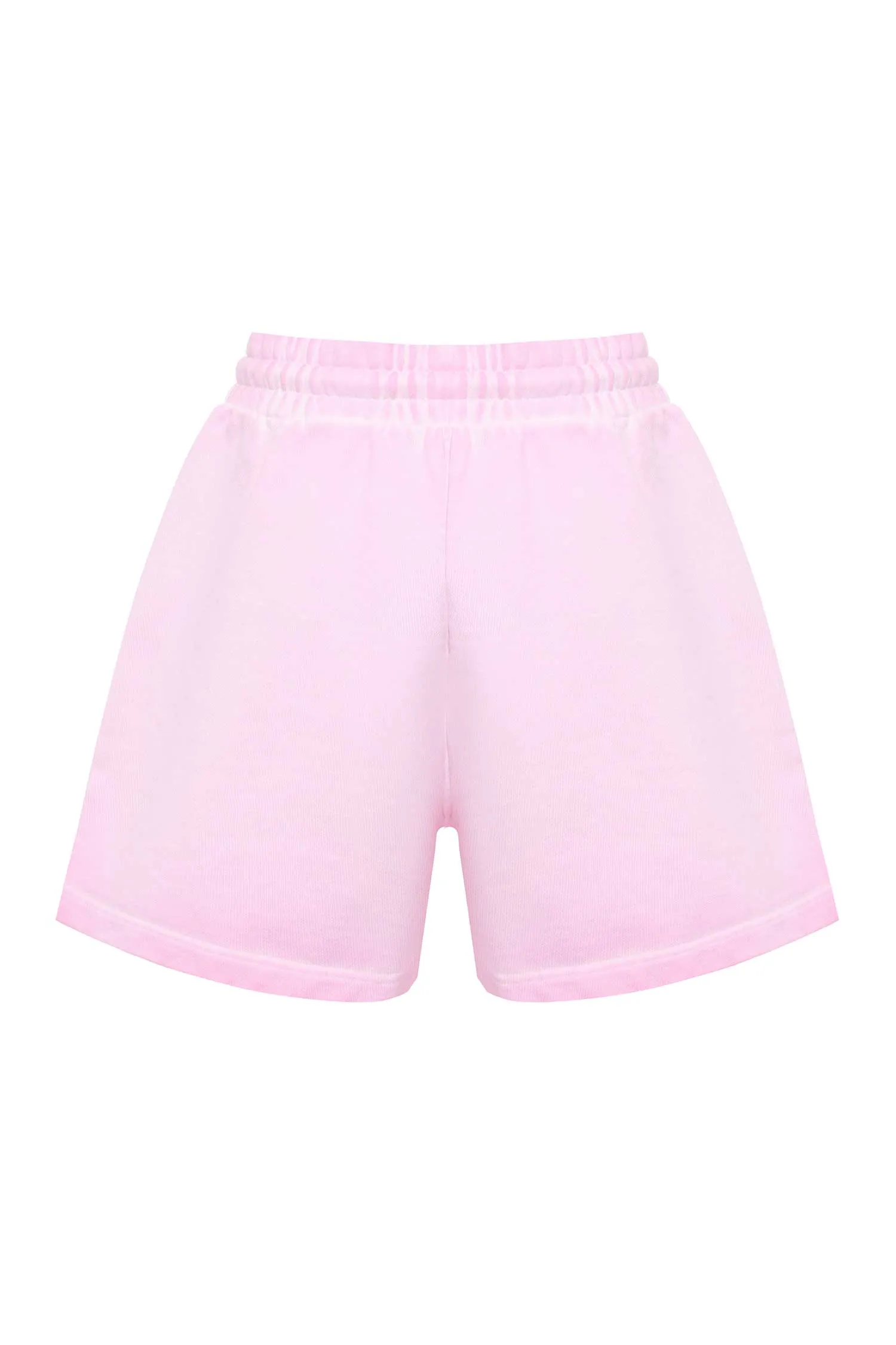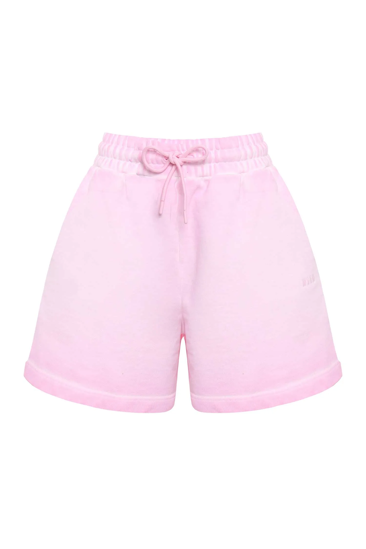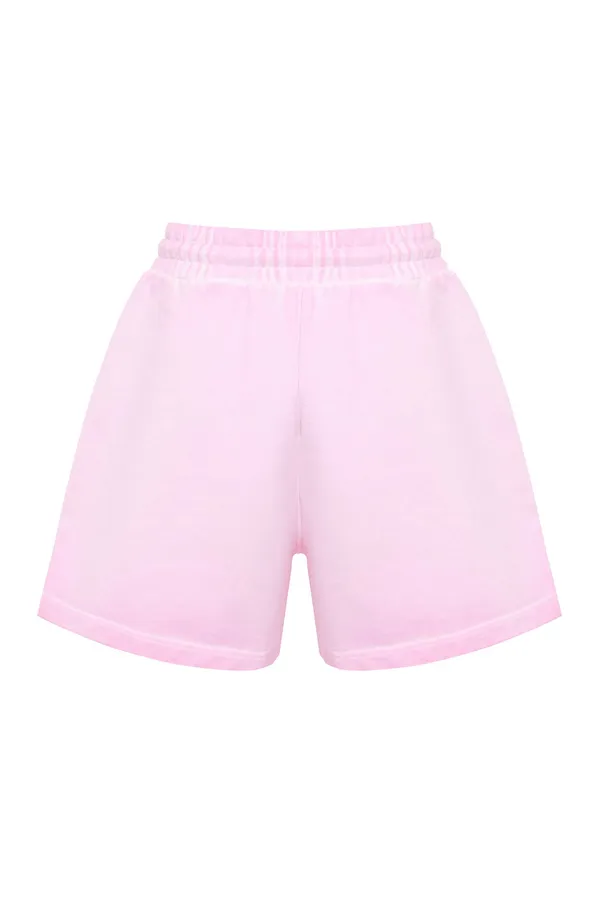 ШОРТЫ РОЗОВЫЕ ДЕГРАДЕ, НА КУЛИСКЕ, СБОКУ ВЫШИТАЯ ЛОГО-НАДПИСЬ В ТОН, КАРМАНЫ