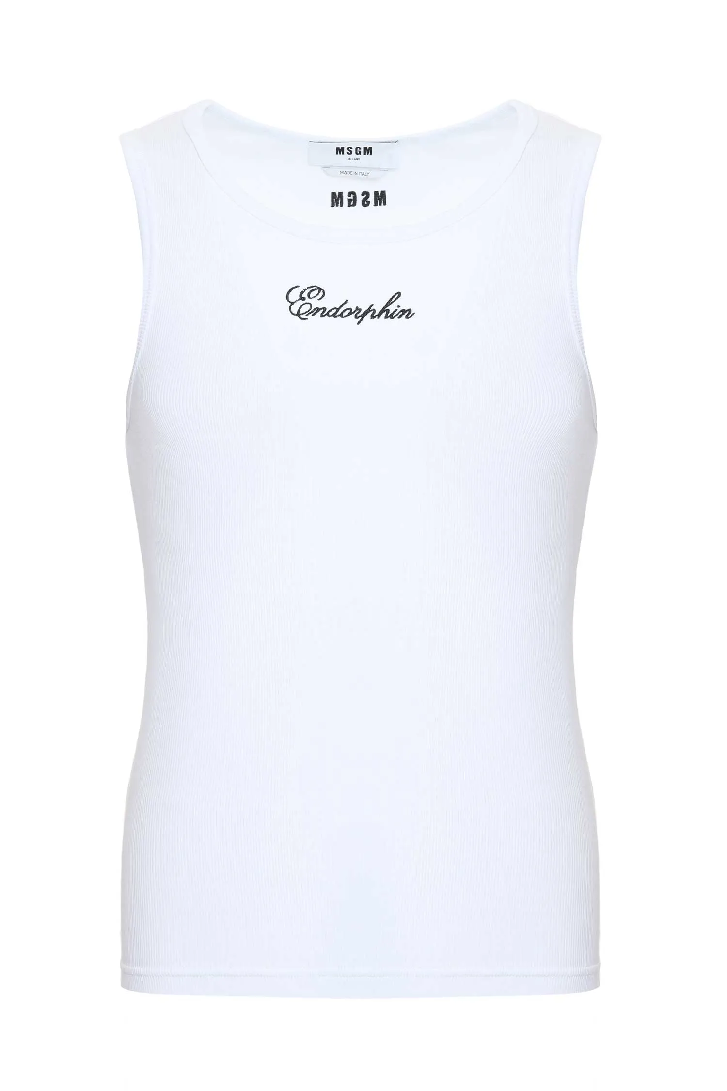МАЙКА М.087 БЕЛАЯ В РУБЧИК, НА ГРУДИ ВЫШИТАЯ ЧЁРНАЯ НАДПИСЬ ENDORPHIN