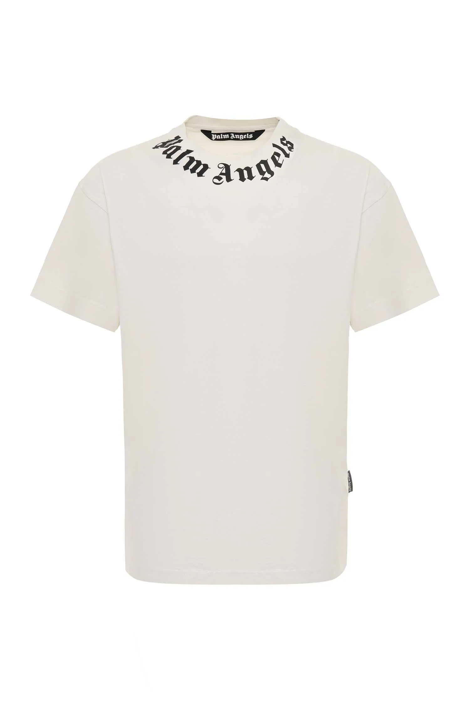 PALM ANGELS ФУТБОЛКА БЕЛАЯ, НА ВОРОТЕ КРУПНАЯ ЧЁРНАЯ ЛОГО-НАДПИСЬ
