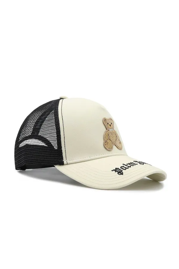 БЕЙСБОЛКА M.068 МОЛОЧНО-ЧЁРНАЯ, КОМБИНИР., ТЕКСТИЛЬ+СЕТКА, СПЕРЕДИ НАШИВКА МИШКА, НА КОЗЫРЬКЕ ЧЁРНАЯ ЛОГО-НАДПИСЬ
