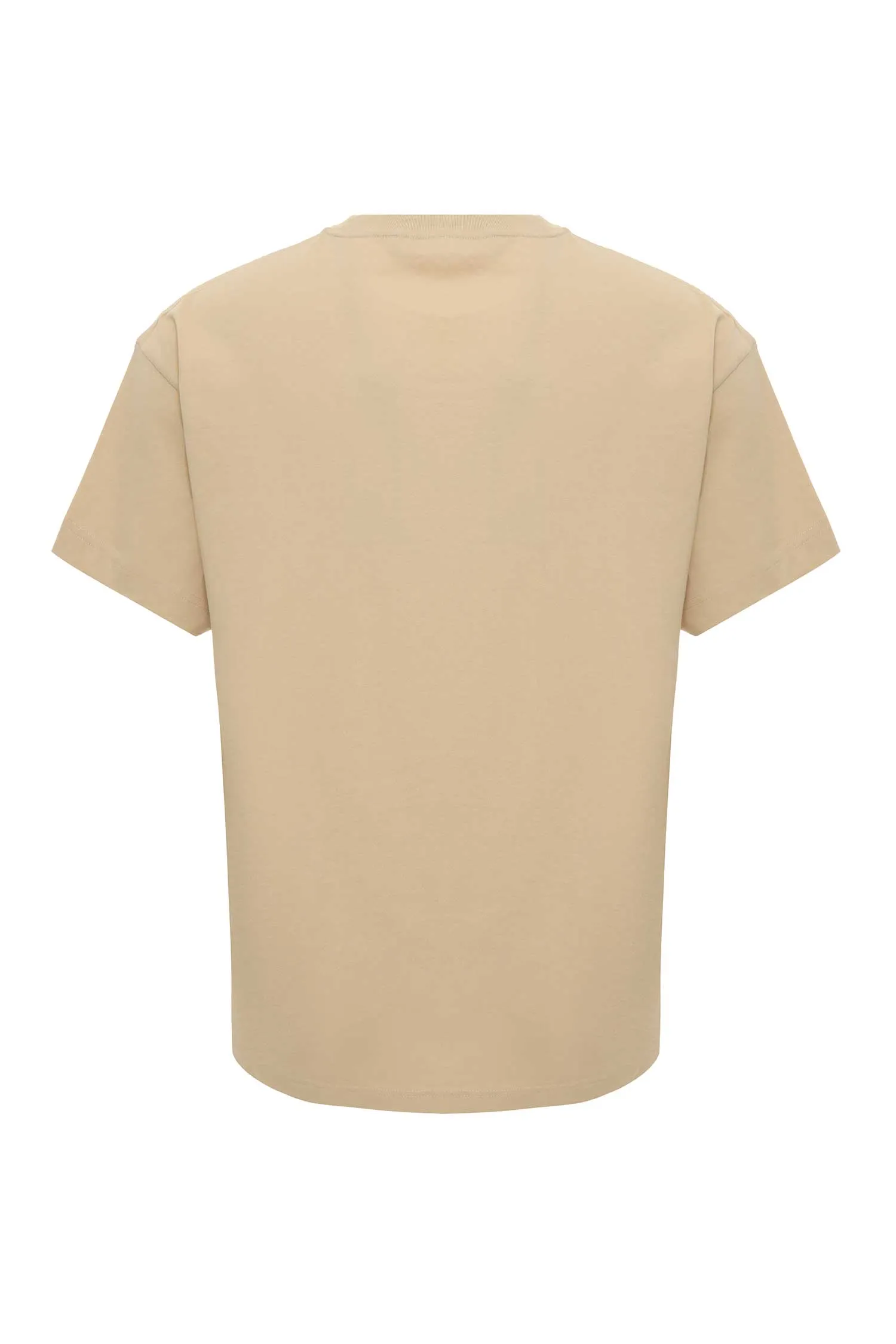 ФУТБОЛКА M.003 БЕЖЕВАЯ, НА ГРУДИ МАЛЕНЬКАЯ БЕЛАЯ ЛОГО-НАДПИСЬ
