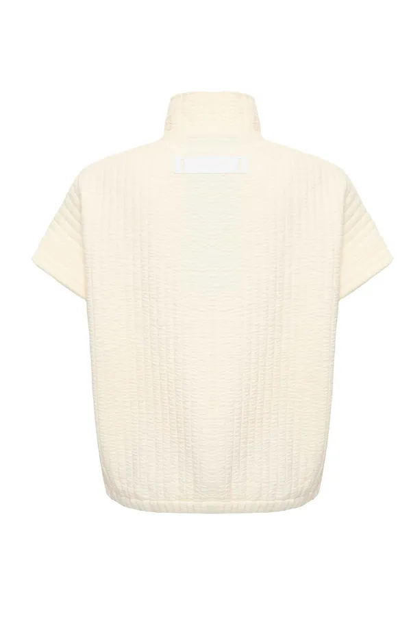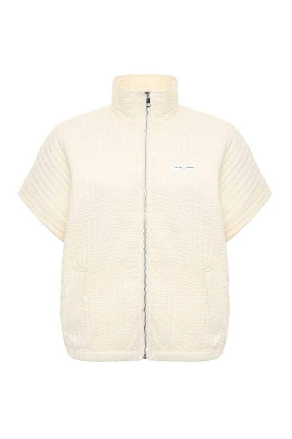 ЖИЛЕТ ЖЁЛТО-МОЛОЧНЫЙ, СТЁГАНЫЙ, РУКАВА ЛЕТУЧАЯ МЫШЬ, ВОРОТ-СТОЙКА