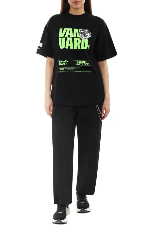 БРЮКИ M.003 ЧЁРНЫЕ С ОТСТРОЧЕННЫМИ СТРЕЛКАМИ, ПОЯС НА РЕЗИНКЕ, СЗАДИ КАРМАН НА МОЛНИИ, ДЕКОРАТ.ЦЕПОЧКА