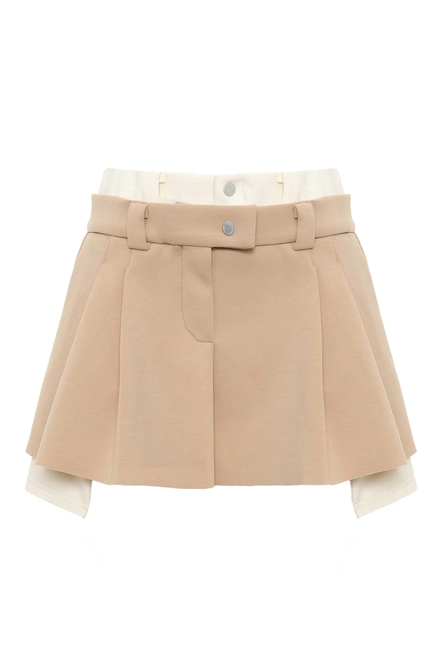 ЮБКА-ШОРТЫ M.372 БЕЖЕВАЯ, ДВОЙНОЙ ПОЯС, СЗАДИ КАРМАНЫ С КЛАПАНОМ