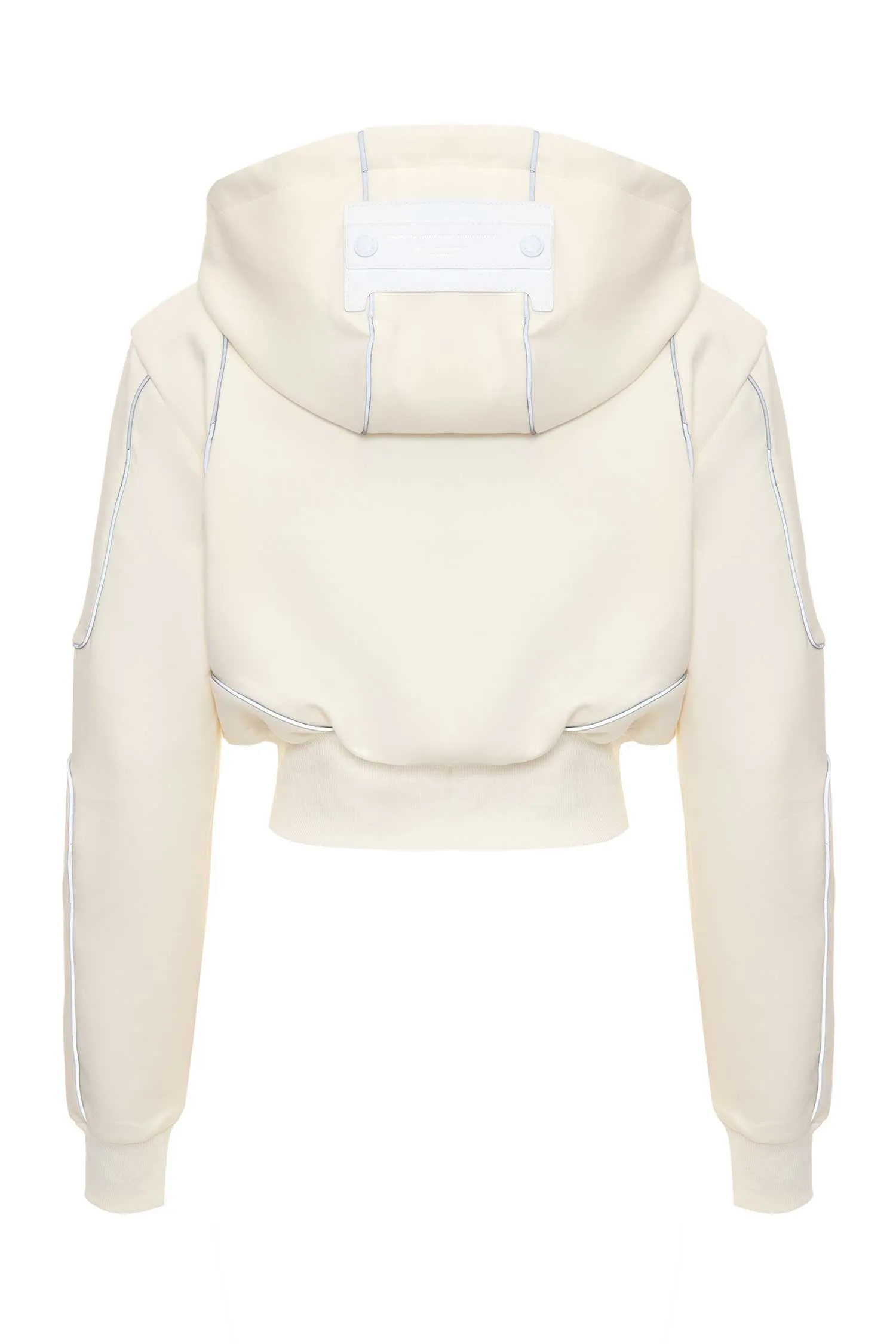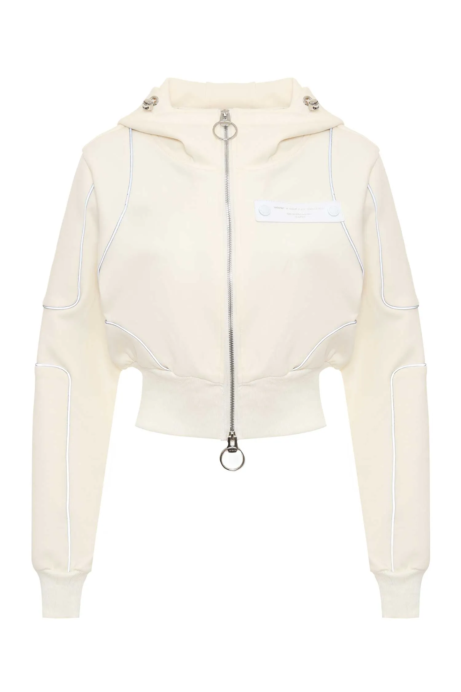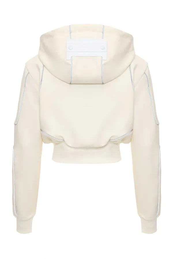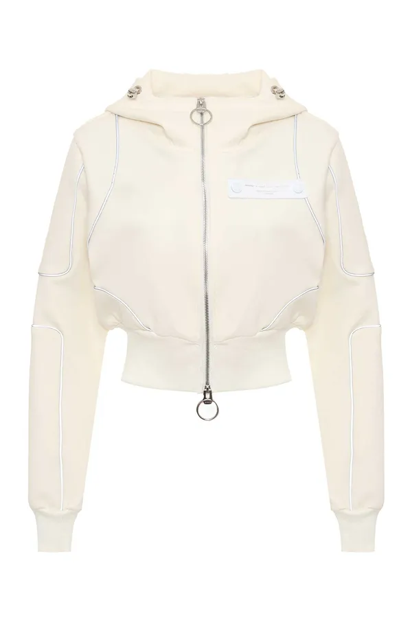 ОЛИМПИЙКА M.373 МОЛОЧНАЯ С СЕРЫМ КАНТОМ, УКОРОЧЕННАЯ, КАПЮШОН