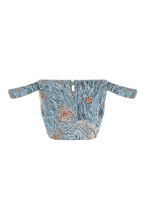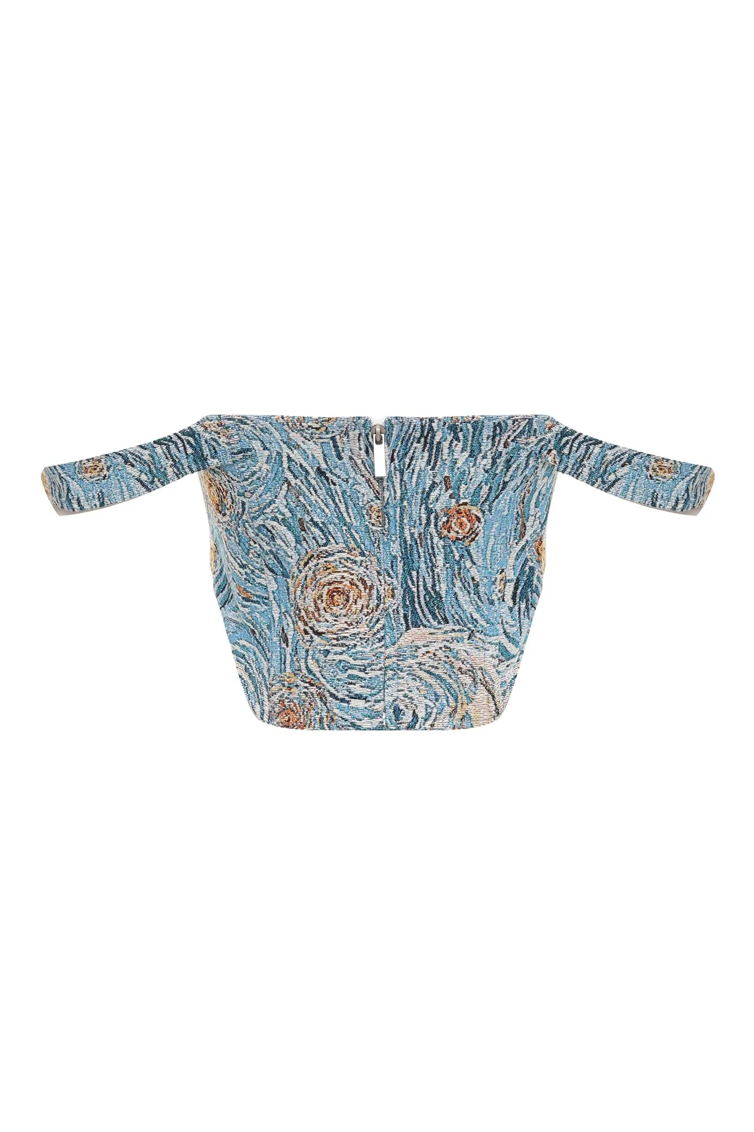 MOD WAVE MOVEMENT ТОП-КОРСЕТ ЖЁЛТО-ГОЛУБОЙ, ПРИНТ ЗВЁЗДНАЯ НОЧЬ, ШИРОКИЕ БРЕТЕЛЬКИ, ОТКРЫТЫЕ ПЛЕЧИ