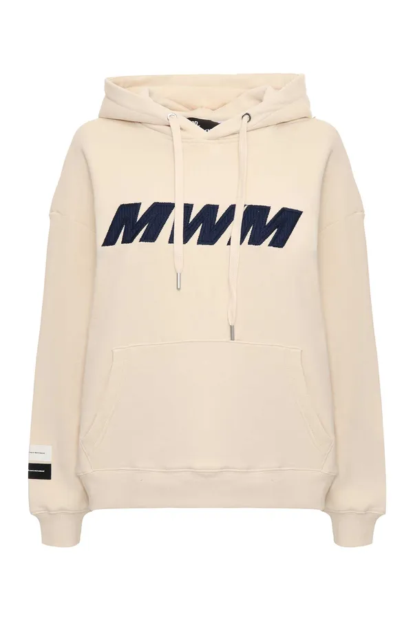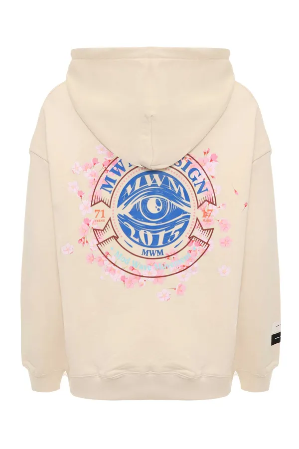 MOD WAVE MOVEMENT ХУДИ СВ/БЕЖЕВОЕ, НА ГРУДИ ВЫШИТОЕ ЛОГО, НА СПИНЕ КРУГЛОЕ СИНЕЕ ЛОГО С РОЗОВЫМИ ЦВЕТАМИ
