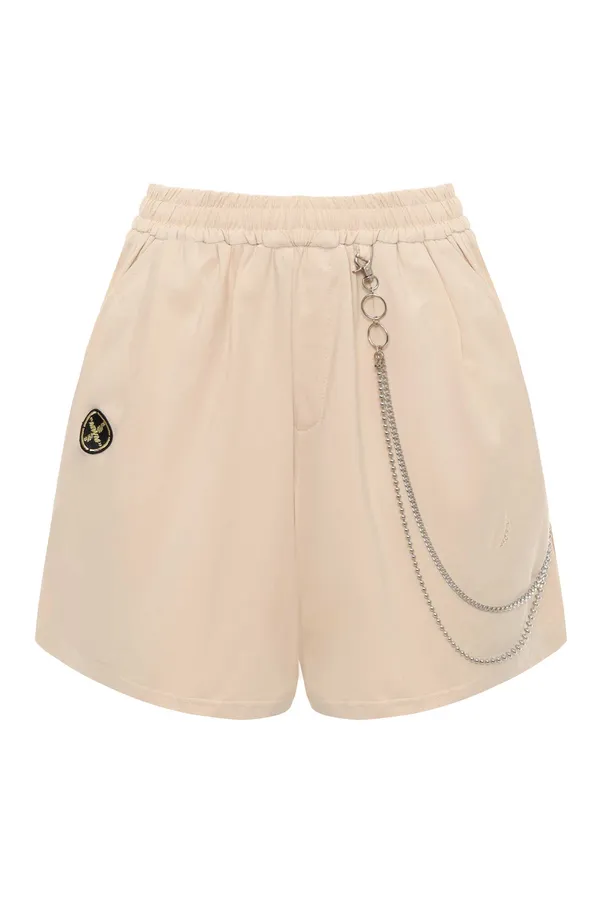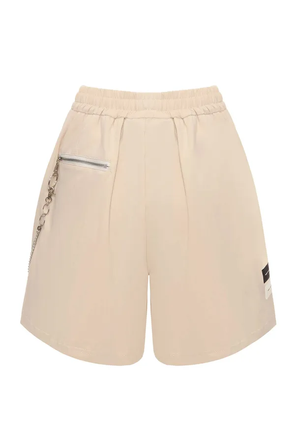 ШОРТЫ M.401 СВ/БЕЖЕВЫЕ, ЭЛАСТИЧНЫЙ ПОЯС, СЗАДИ КАРМАН НА МОЛНИИ, ДЕКОРАТ.ЦЕПОЧКА