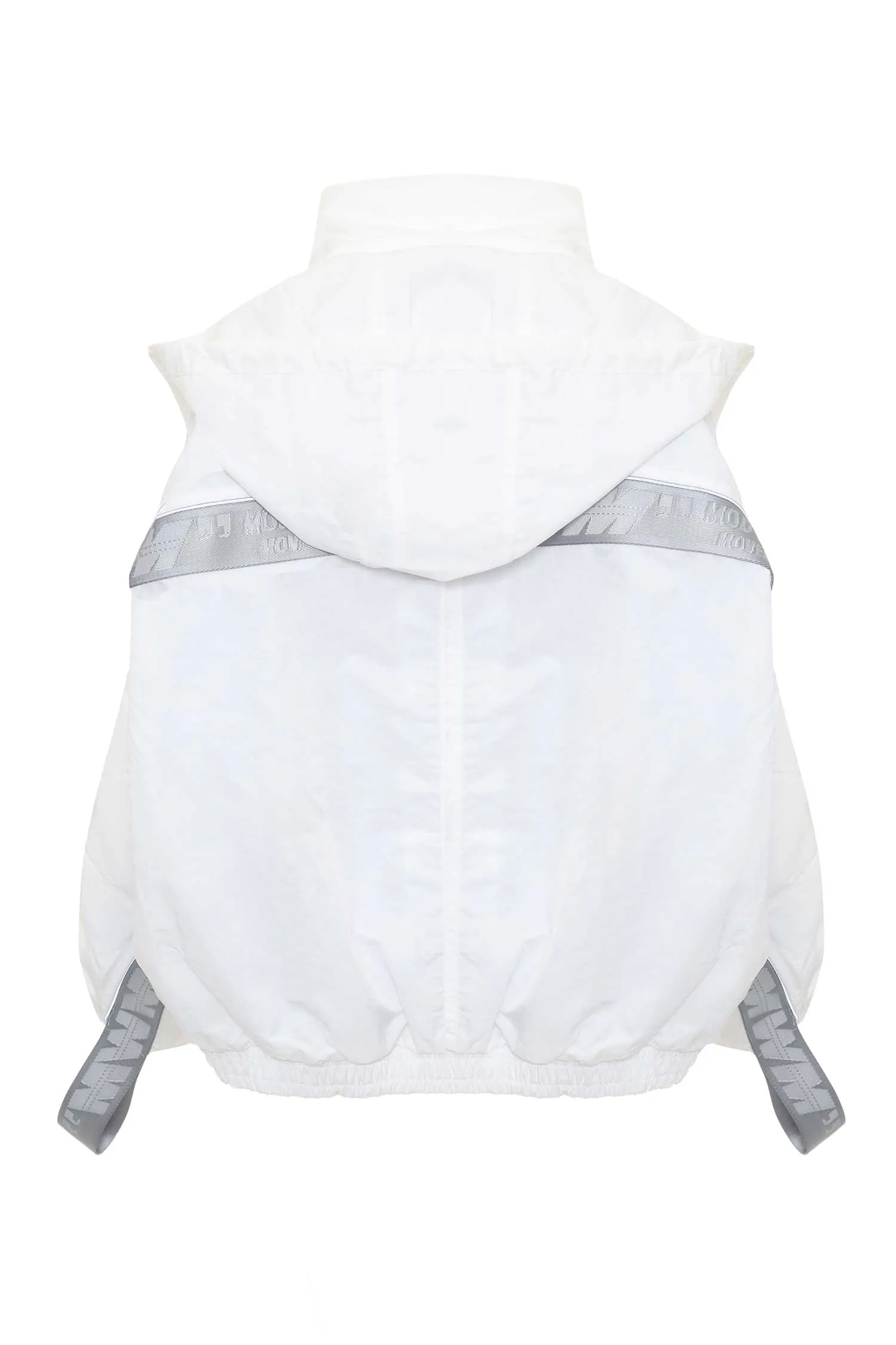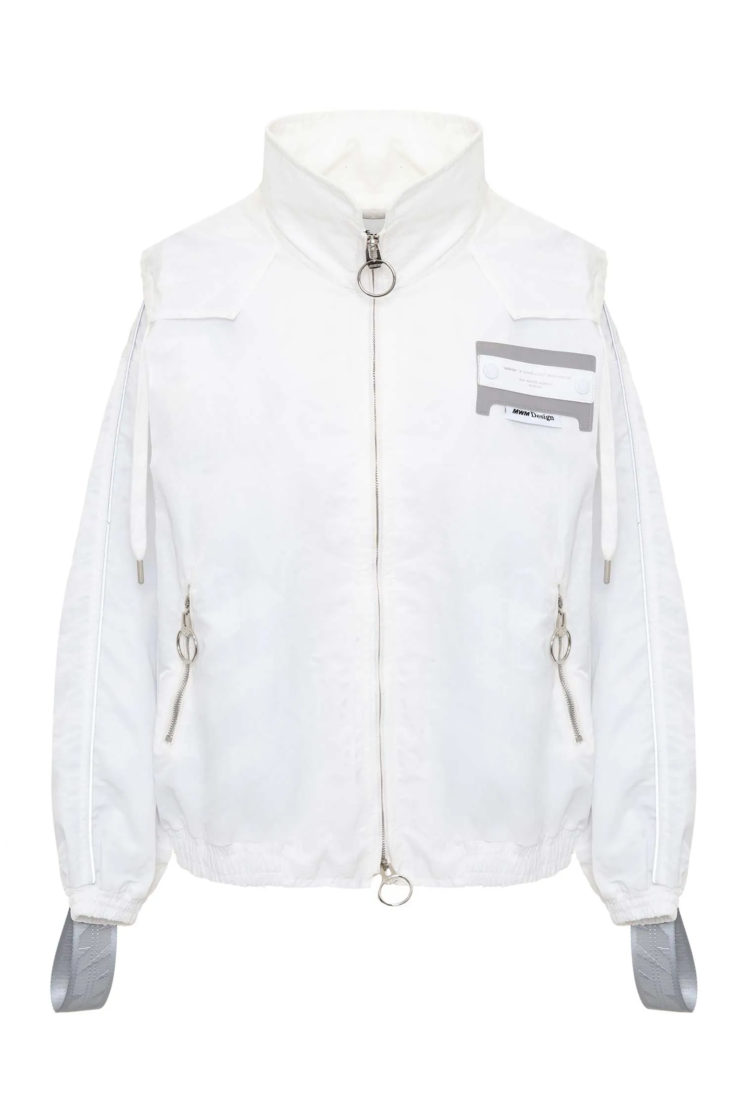 MOD WAVE MOVEMENT ВЕТРОВКА БЕЛАЯ ИЗ НЕЙЛОНА, СВОБОДНАЯ, ОТД.ШИРОКОЙ СЕРОЙ ТЕСЬМОЙ В ЛОГО, КАРМАНЫ НА МОЛНИИ, ВОРОТ-СТОЙКА, КАПЮШОН
