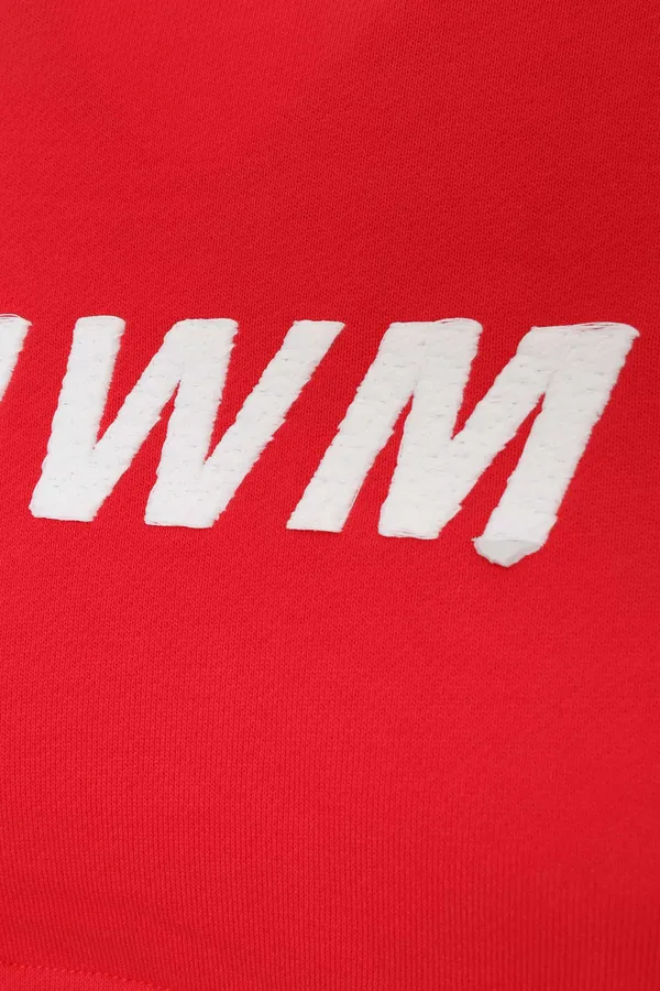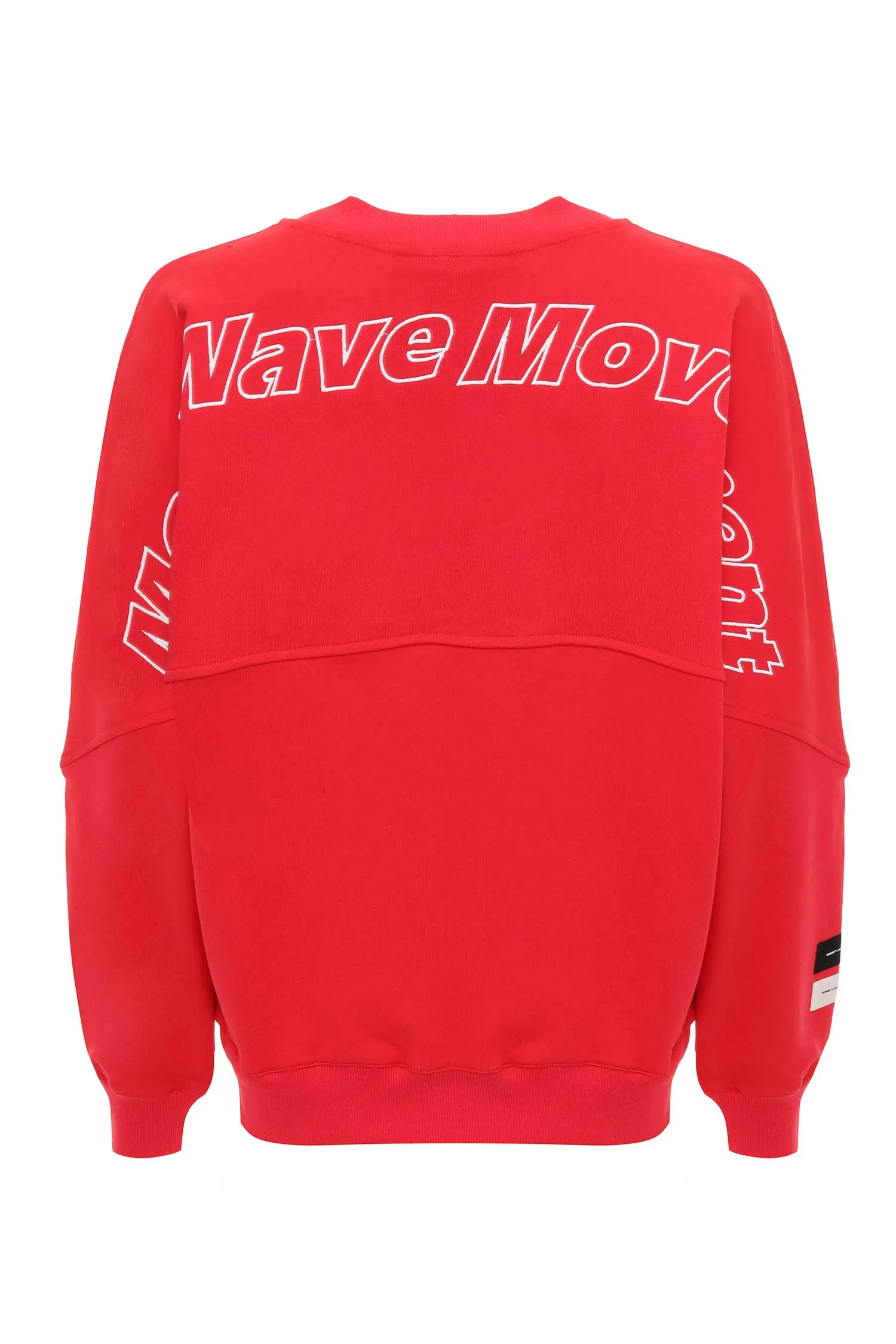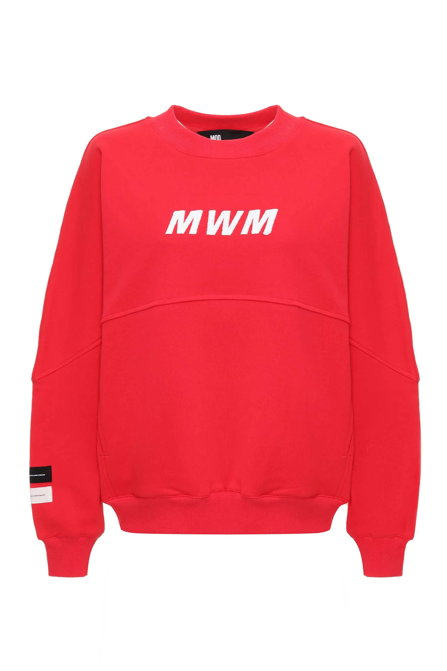 MOD WAVE MOVEMENT СВИТШОТ КРАСНЫЙ, СВОБОДНЫЙ, НА ГРУДИ И СПИНЕ ВЫШИТАЯ БЕЛАЯ ЛОГО-НАДПИСЬ, РУКАВА ЛЕТУЧАЯ МЫШЬ, БОКОВЫЕ КАРМАНЫ