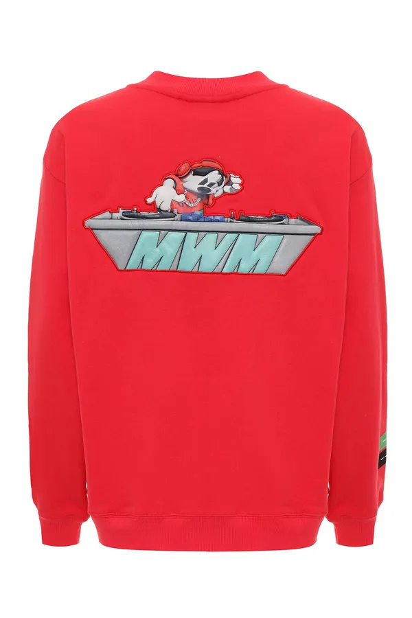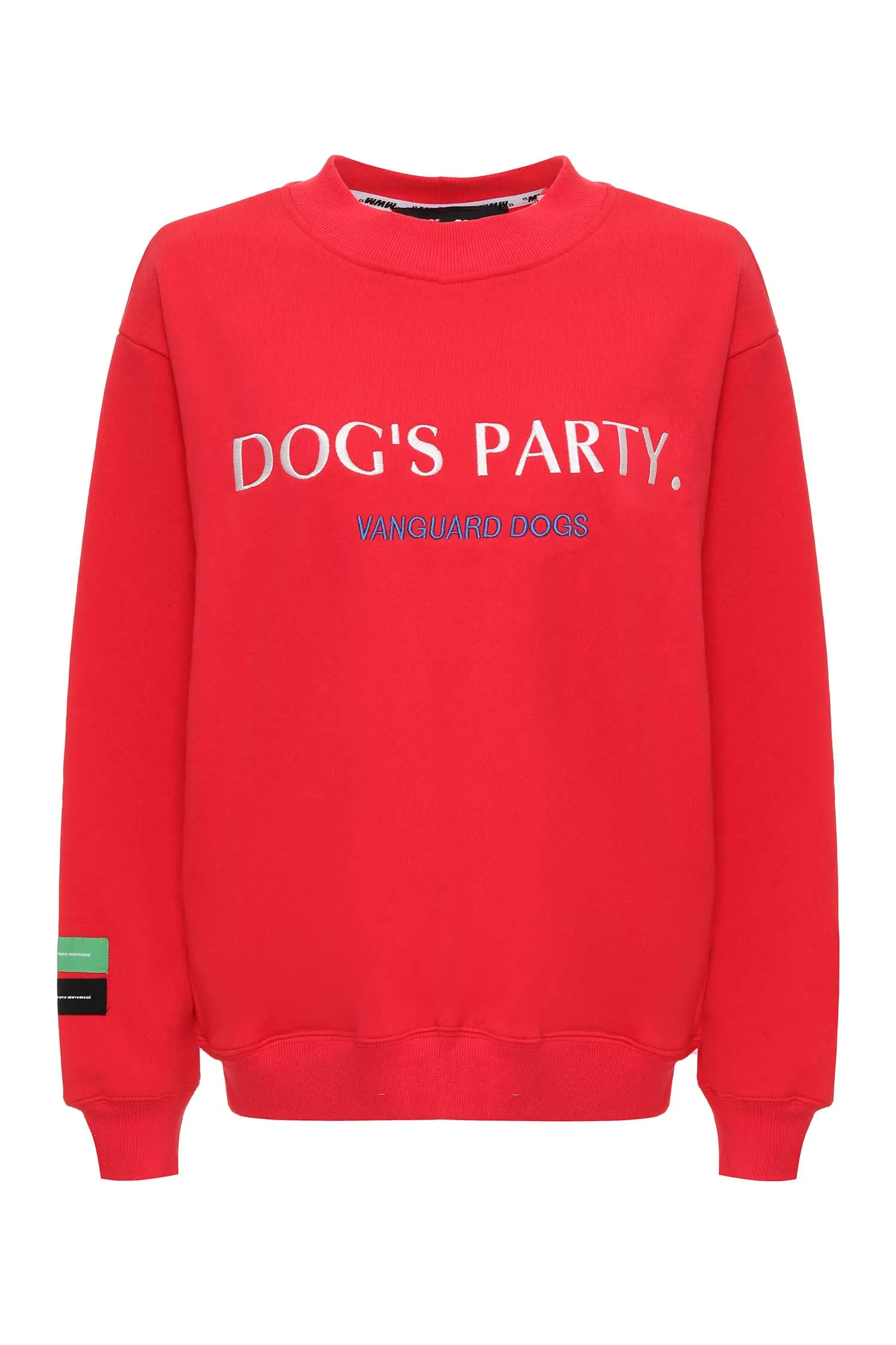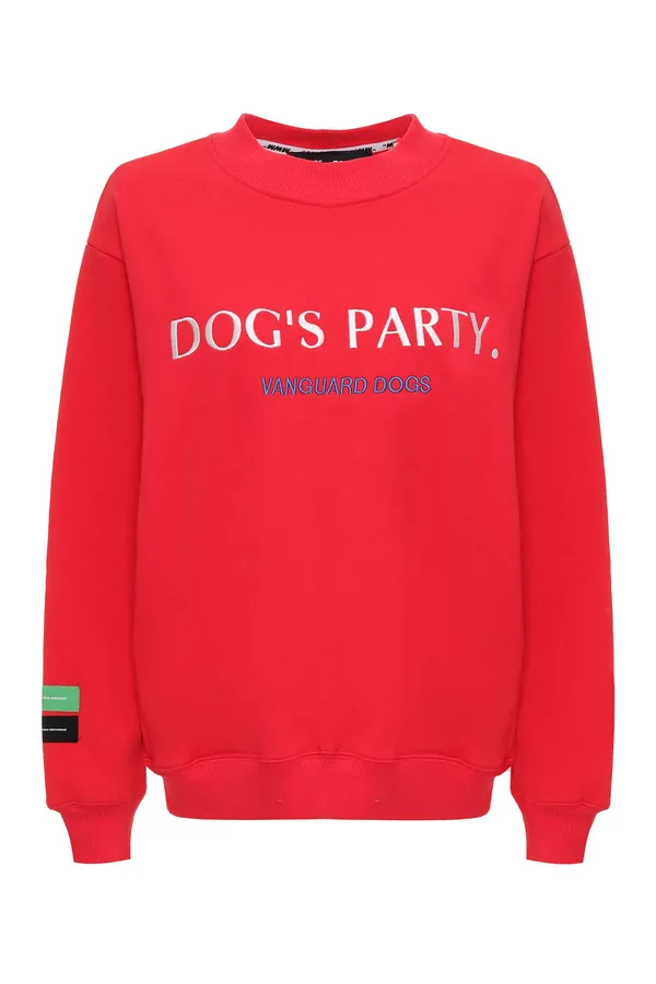 MOD WAVE MOVEMENT СВИТШОТ КРАСНЫЙ, НА ГРУДИ ВЫШИТАЯ НАДПИСЬ DOGS PARTY, НА СПИНЕ НАШИВКА VANGUARD DOGS, БОКОВЫЕ КАРМАНЫ