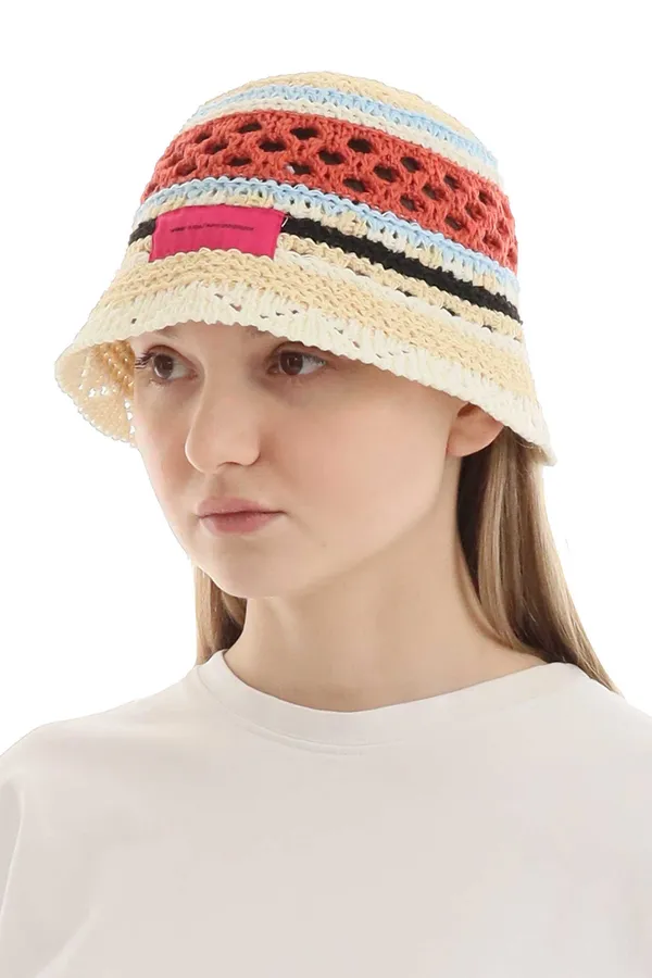 ПАНАМА БЕЖЕВАЯ В Т/ОРАНЖЕВУЮ/ГОЛУБУЮ ПОЛОСКИ, ПЛЕТЁНАЯ
