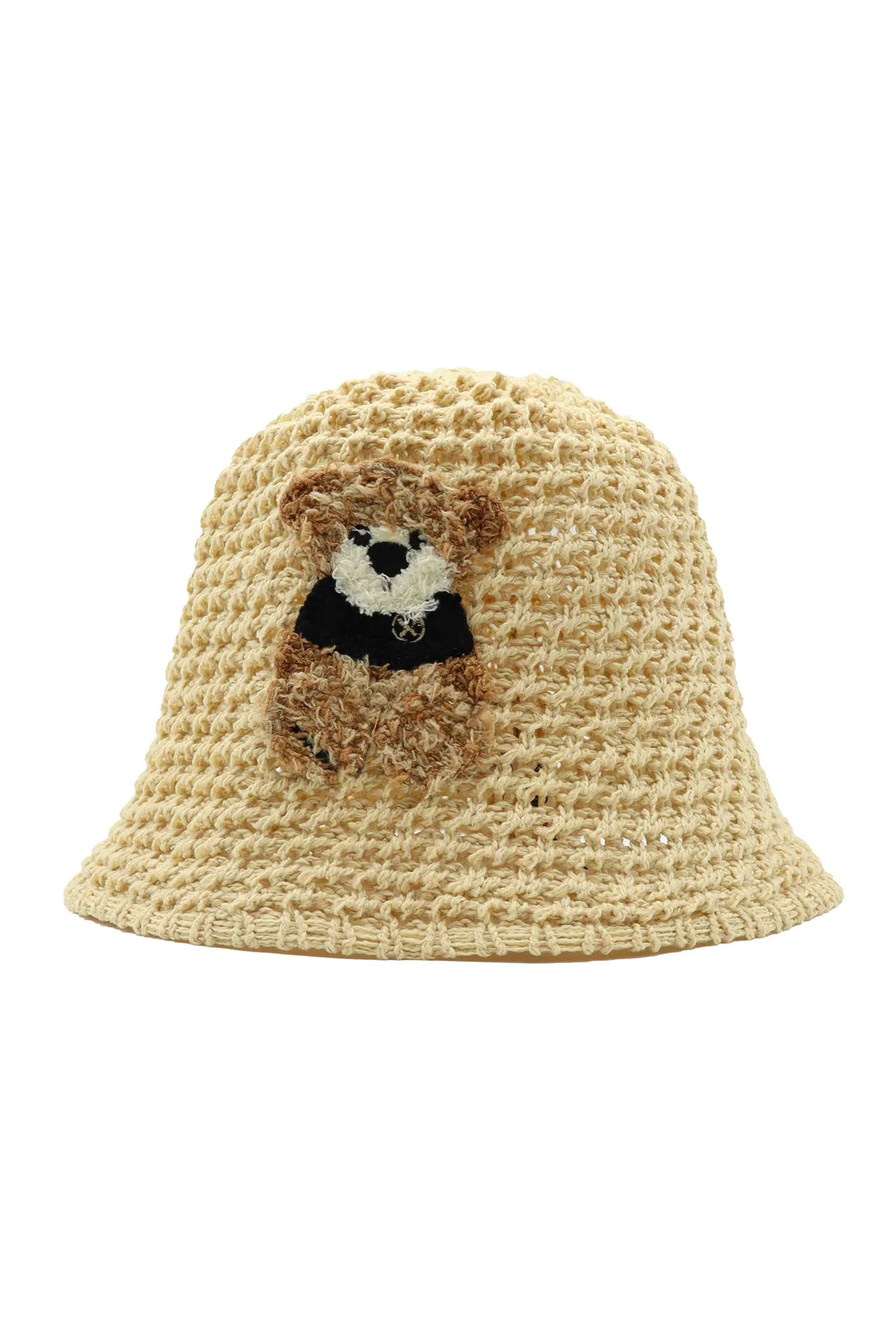 ПАНАМА БЕЖЕВАЯ, ПЛЕТЁНАЯ, КОРИЧНЕВАЯ НАШИВКА МИШКА