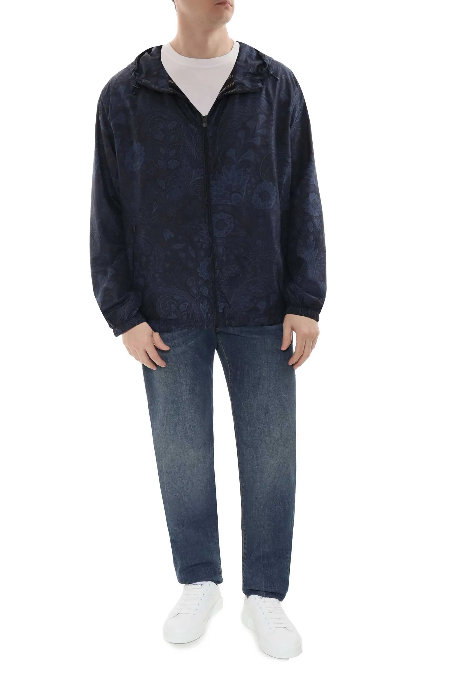 ETRO ВЕТРОВКА M.0106 Т/СИНЕ-ЧЁРНАЯ, ПРИН ПЕЙСЛИ, КРАМАНЫ НА МОЛНИИ, КАПЮШОН НА КУЛИСКЕ