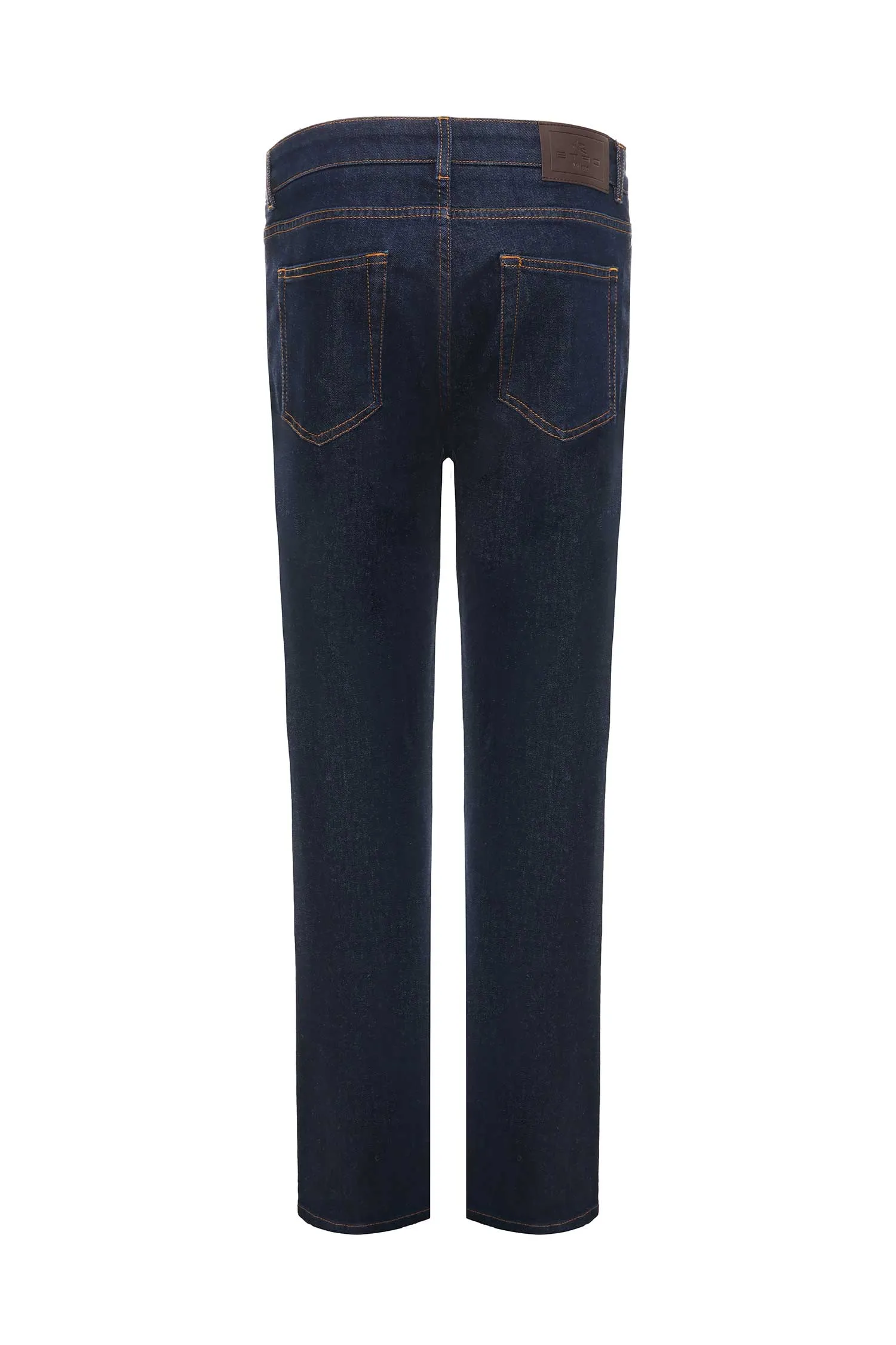 ДЖИНСЫ М.0004 REGULAR Т/СИНИЕ СТРЕТЧ, ТОНКИЕ, НА ПОЯСЕ Т/КОРИЧНЕВАЯ НАШИВКА-ЛОГО ИЗ КОЖИ, Ш=19