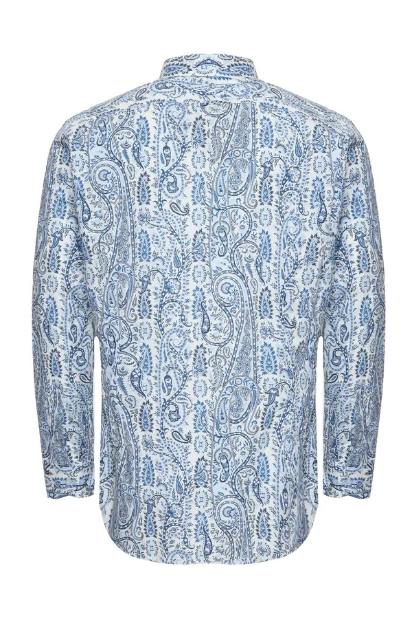ETRO РУБАШКА МОЛОЧНО-ГОЛУБАЯ, ПРИНТ ПЕЙСЛИ, ПРИТАЛЕННАЯ, ДЛ/РУК.