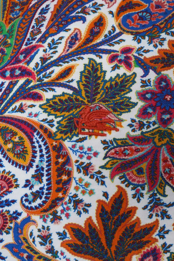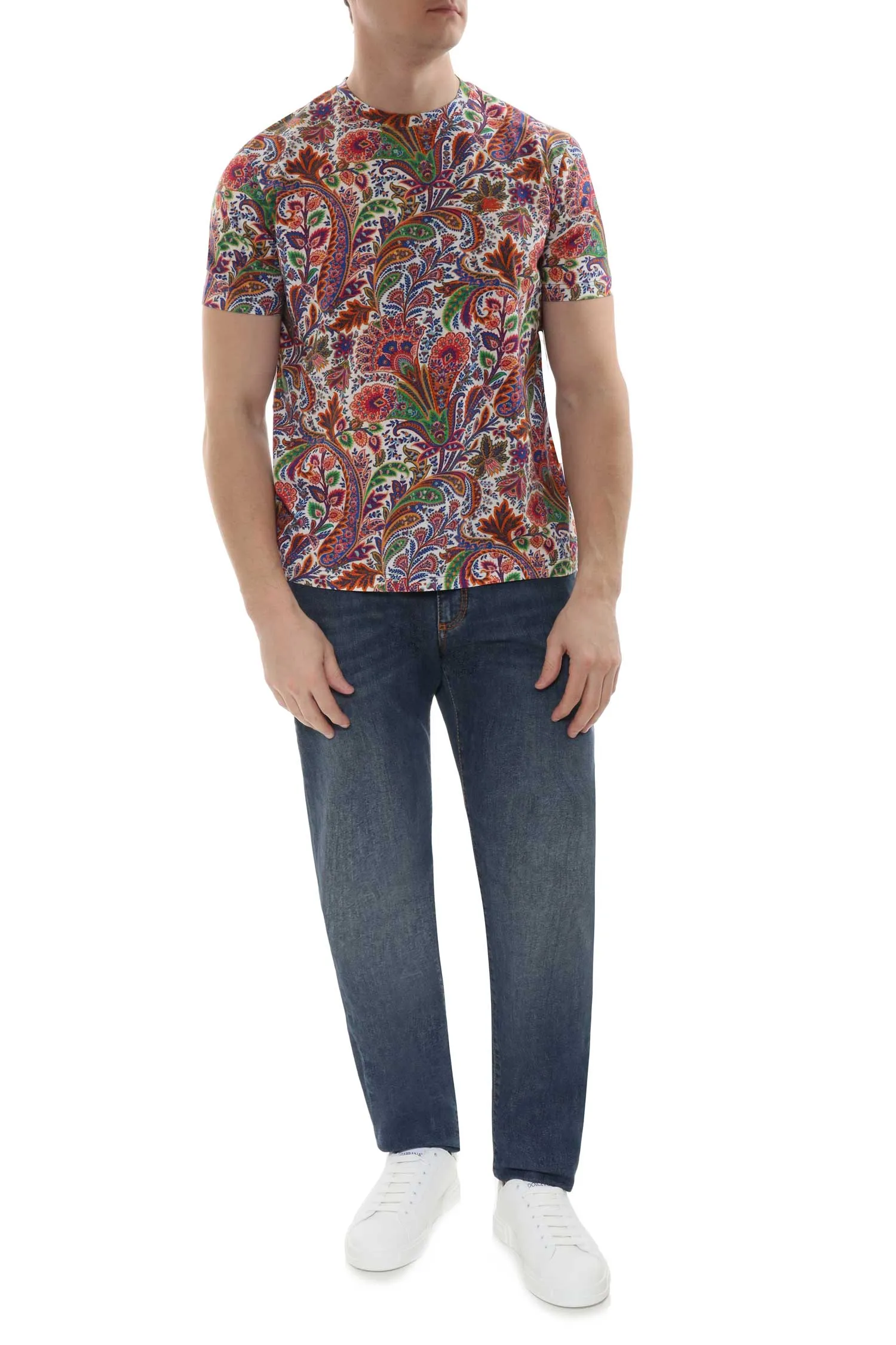 ETRO ФУТБОЛКА СИНЕ-ОРАНЖЕВО-ЗЕЛЁНАЯ, ПРИНТ ПЕЙСЛИ